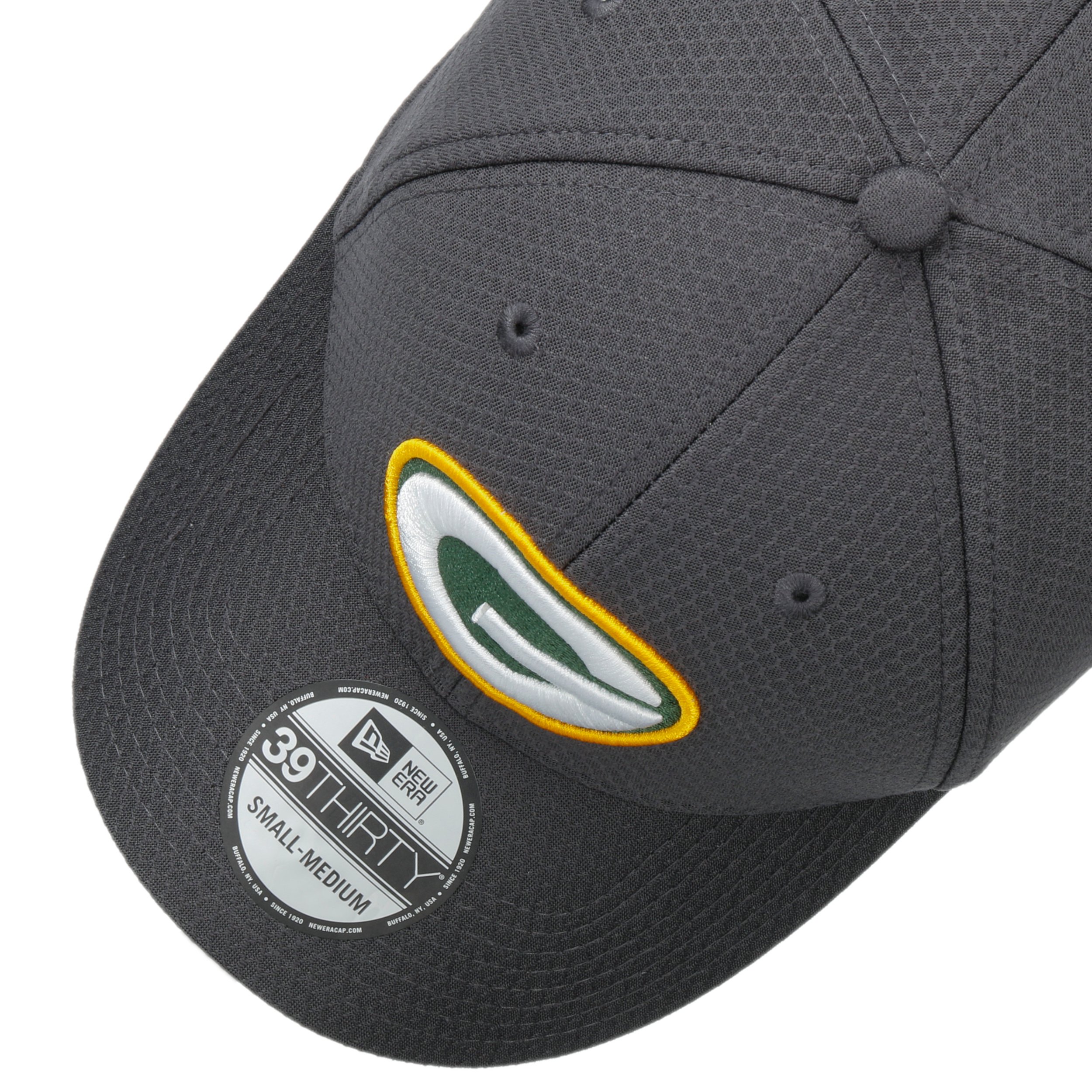 If your heart belongs to the Green Bay Packers playing in the NFL, then we’ve got the right hat for you.The 39Thirty Green Bay Packers Cap from New Era is fully closed at the back and features a reinforced front and curved visor. In terms of functionality, the full cap scores very highly with its embroidered ventilation eyelets, which ensure your head stays nice and cool, and the elasticated stretch lining band, which further maximises the already excellent levels of comfort.