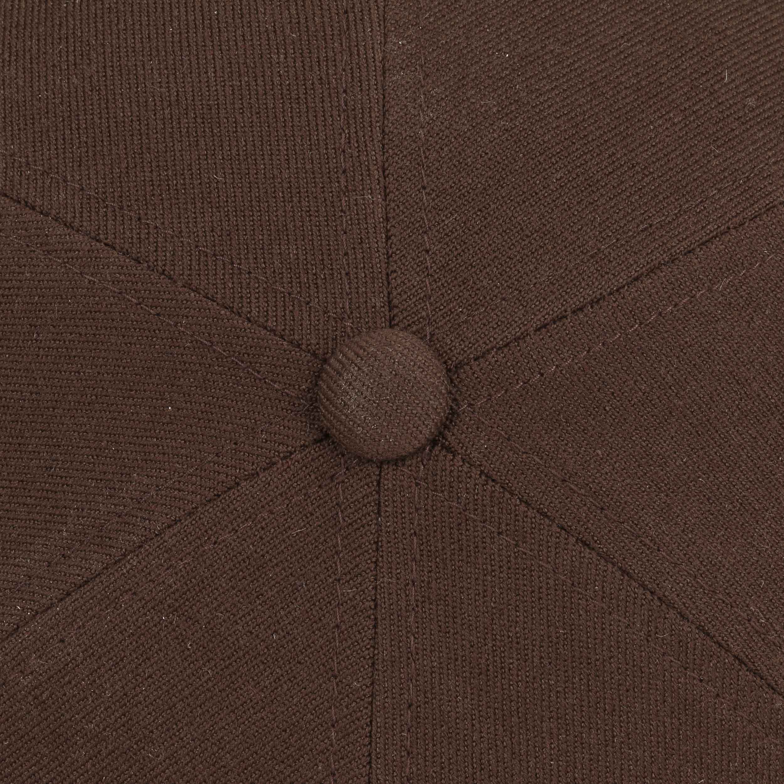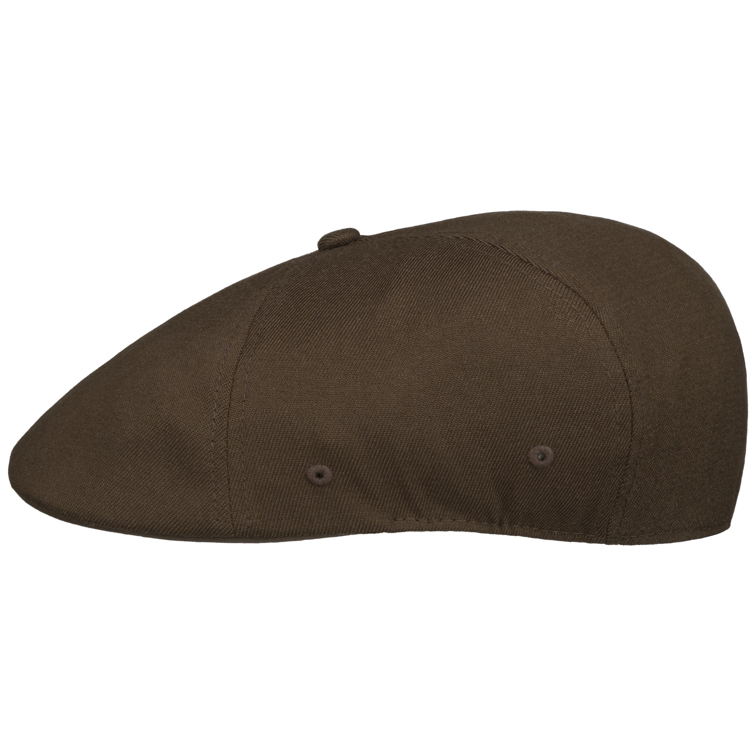 Six panels and one colour for this smooth Kangol cap with sloped crown, buttoned top, side eyelets and embroidered kangaroo logo on the back. Made from a lightweight wool blend, it is the perfect headwear from autumn to spring.