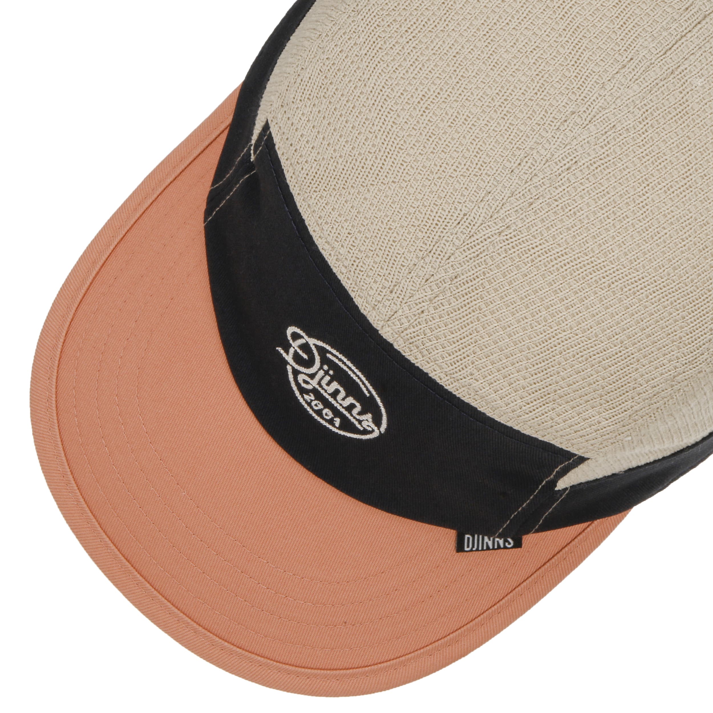This five-panel baseball cap combines a minimalist design with an everyday sporty look, making it ideal for leisure, travel and city wear. The Djinns brand relies on breathable, soft-to-the-touch cotton that fits comfortably thanks to its stretchy lining. The slightly curved shade provides pleasant shade. The size-adjustable cap remains pleasantly flexible, like a fabric cap.