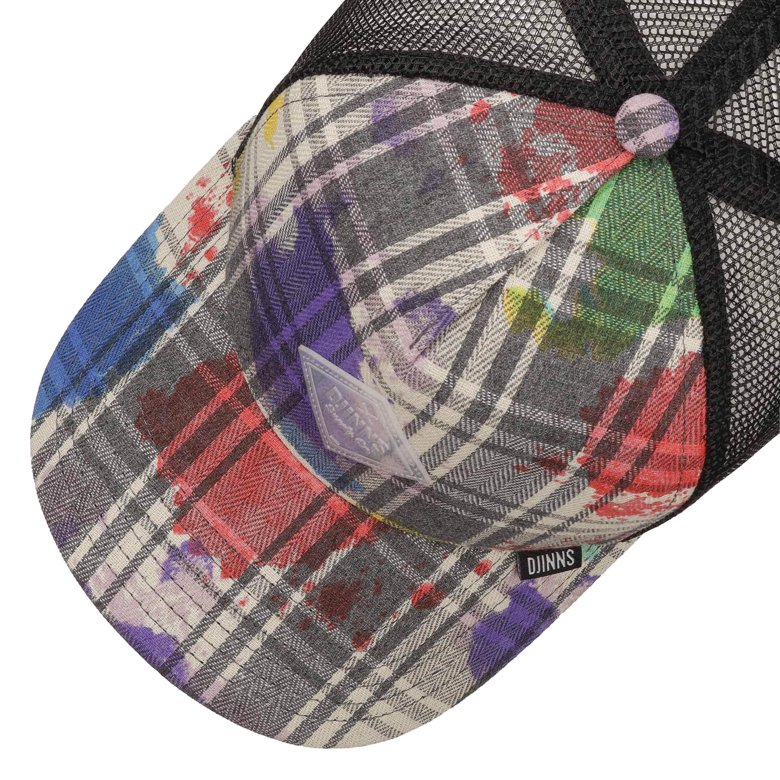 The classic baseball cap takes the form of a modern trucker cap here with a striking checked pattern and trendy sprinkle details. Inspired by the casual urban look, the Djinns model offers summery comfort thanks to a mix of skin-friendly cotton and airy mesh material. The snapback version is individually adjustable in size and impresses with its unconventional design. The multi-coloured check with an innovative used look adds an urban accent to any outfit.