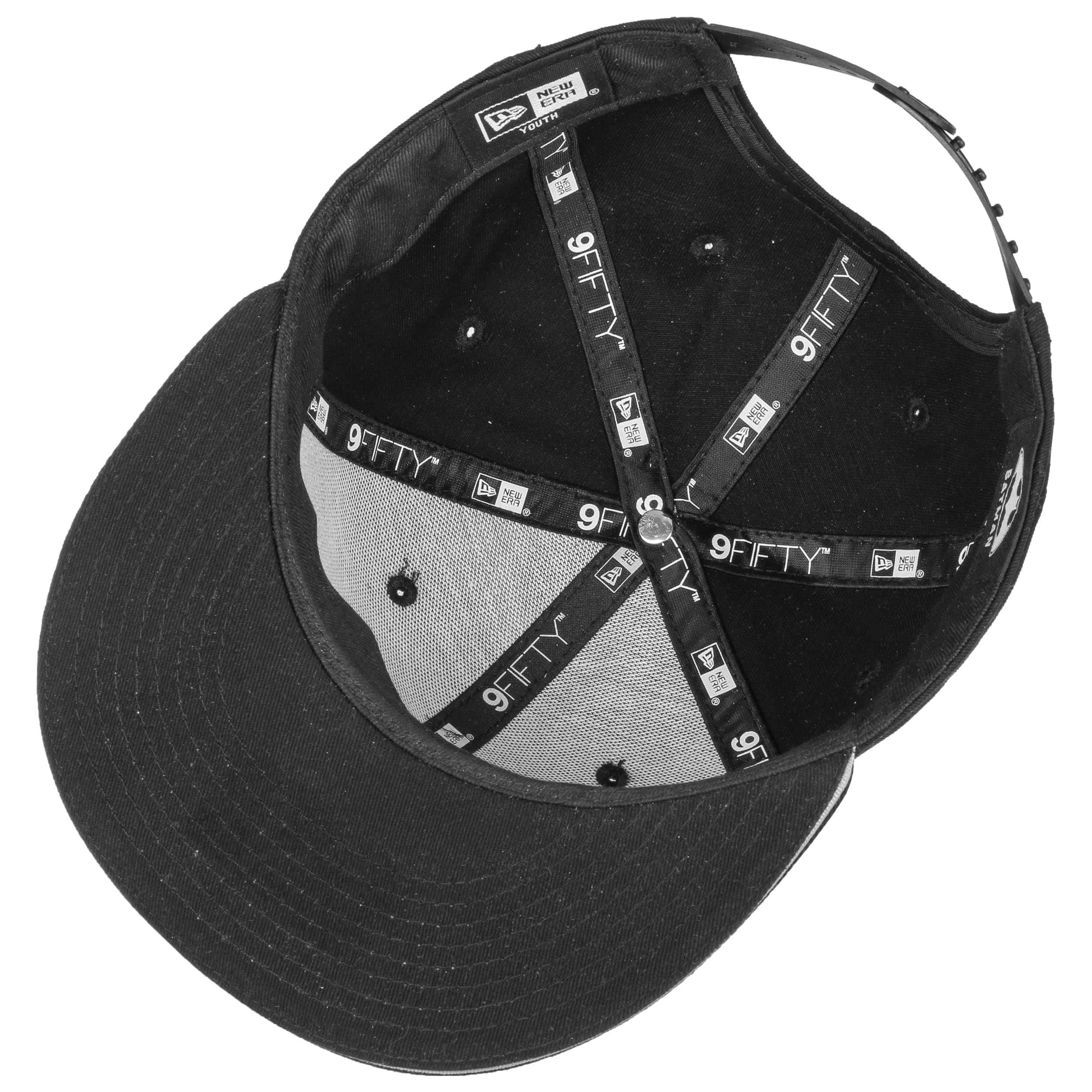 The 9Fifty Kids Batman Cap from New Era is stylish and right on trend with its reinforced front and characteristic flat brim. The peak is 6.5 cm long, whilst the head section of this stylish baseball cap is embellished with embroidered ventilation eyelets and measures 9.5 cm in height. This cap, made by the world-famous brand from Buffalo, has an opening at the back and the adjustable snapback closure ensures the best fit and extraordinary comfort at all times.