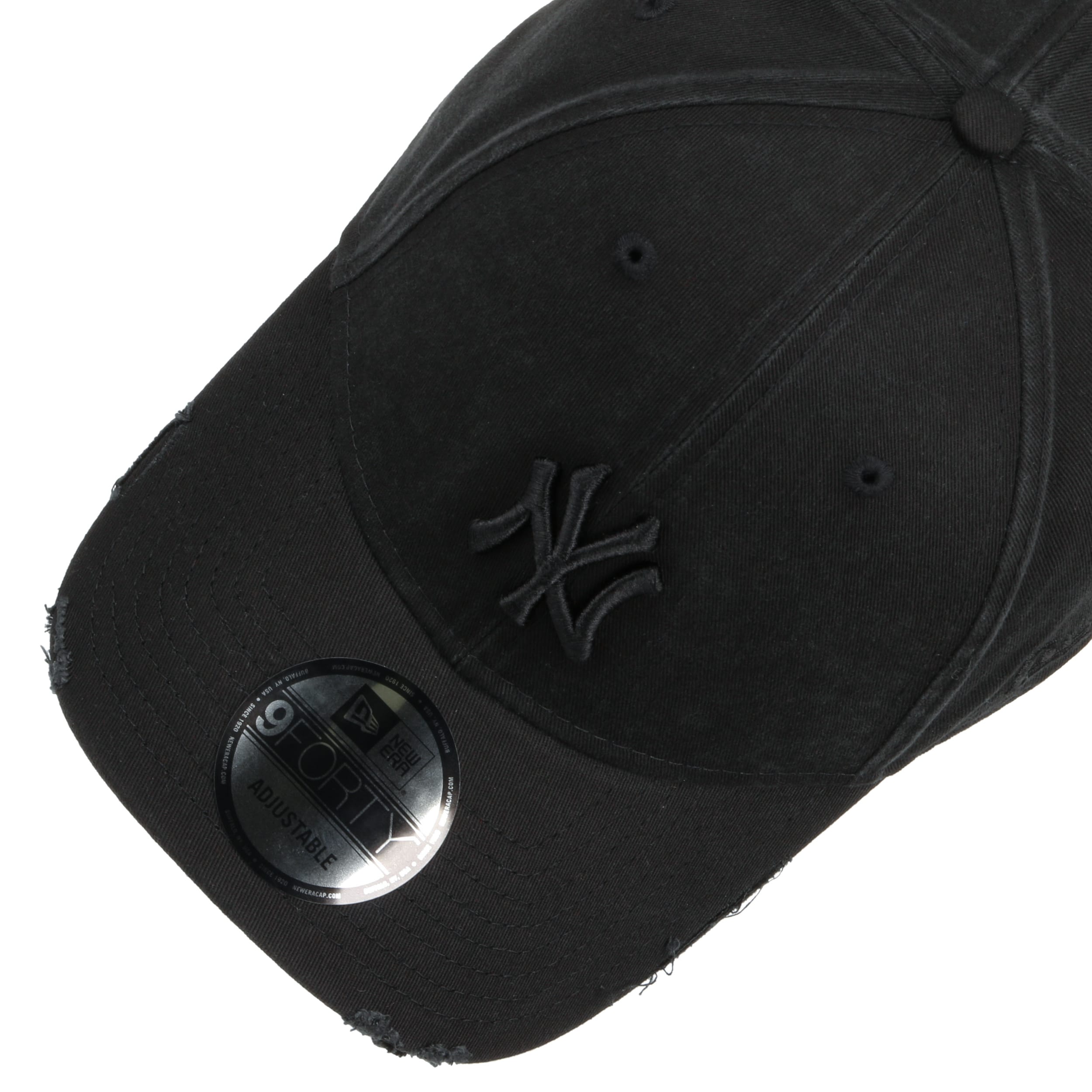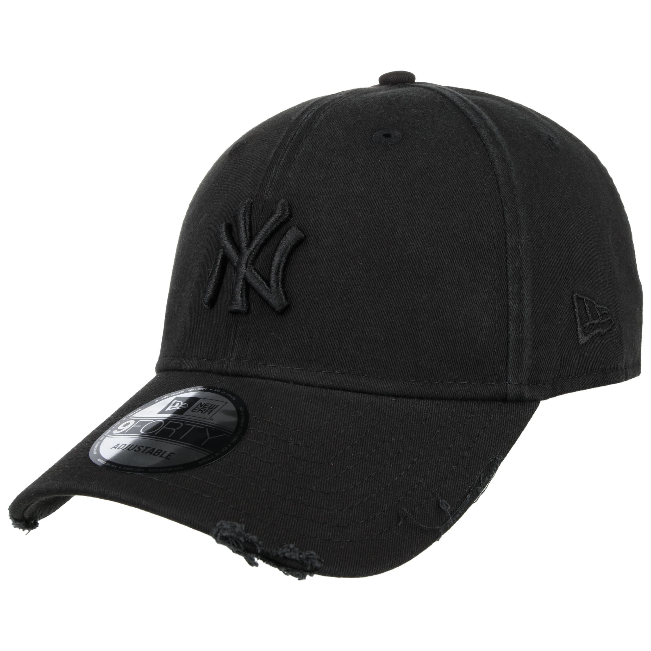 It was an ethnic German emigrant by the name of Ehrhardt Koch who founded the New Era Cap Company in Buffalo, New York, in 1920. The product line of the American entreprise is characterized by innovative design and eye-catching colour effects. Since 1994, the style to beat, the New Era 59FIFTY, has been the official cap of Major League Baseball. Further licenses for NBA, NHL and different comics make the brand an unbeatable trendsetter when it comes to stylish baseball caps.- 9Forty Distressed Yankees Cap by New Era - black 1