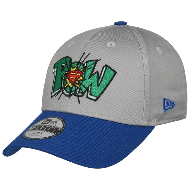 It was an ethnic German emigrant by the name of Ehrhardt Koch who founded the New Era Cap Company in Buffalo, New York, in 1920. The product line of the American entreprise is characterized by innovative design and eye-catching colour effects. Since 1994, the style to beat, the New Era 59FIFTY, has been the official cap of Major League Baseball. Further licenses for NBA, NHL and different comics make the brand an unbeatable trendsetter when it comes to stylish baseball caps.- 9Forty Kids Superman Grabaz Pow Cap by New Era - grey-blue 1