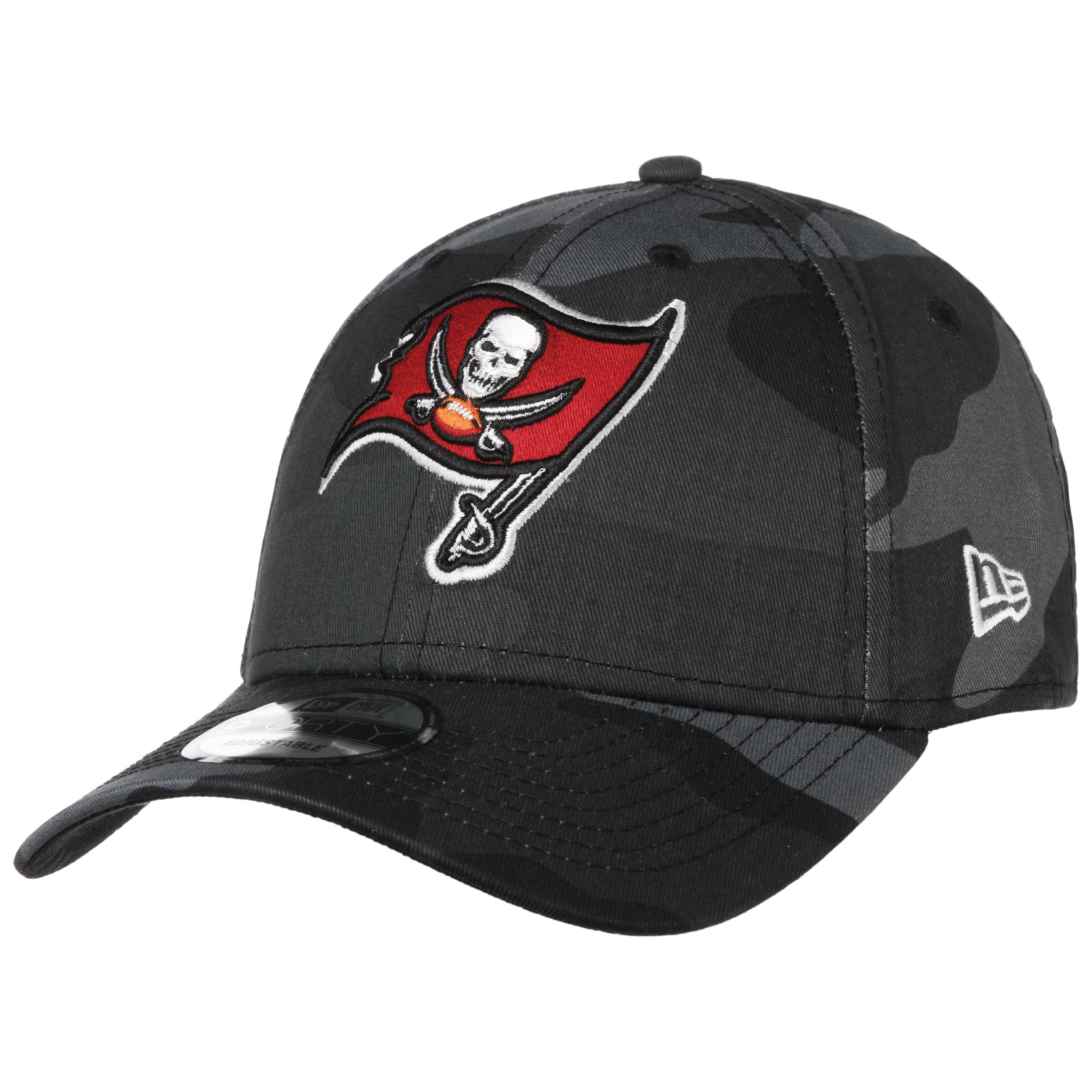 The timelessly stylish 9Forty NFL Buccaneers Camo Cap from New Era has already become an established must-have accessory for all fans of the Tampa Bay Buccaneers. The baseball cap features a conventional design with a reinforced front and a pre-bent peak that is 7 cm long. In contrast, the head section is 13 cm tall. The NFL cap can be adjusted to fit any size so that it sits perfectly on the wearer’s head and offers outstanding comfort.