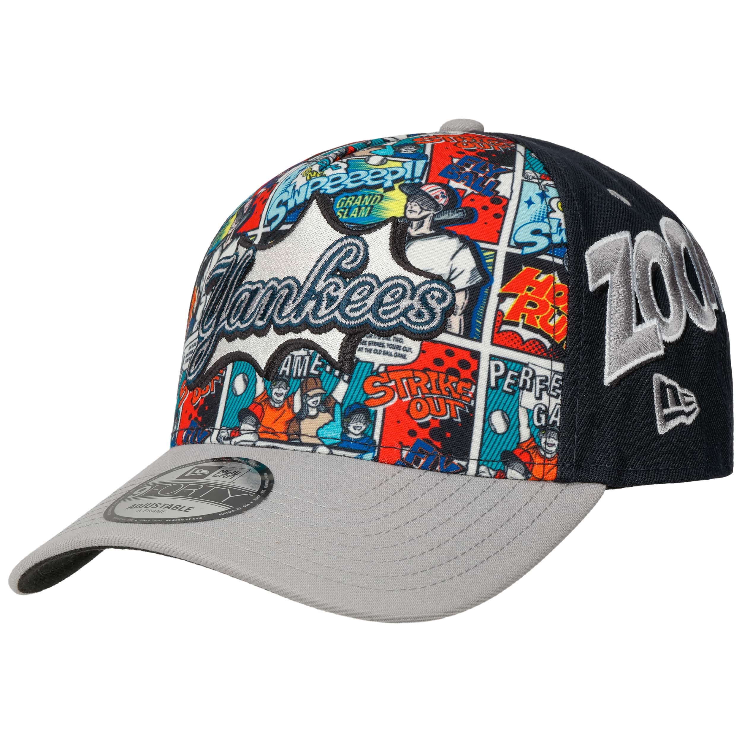 This dynamic 5-panel baseball cap combines sporty tradition and urban street style. Striking embroidery and eye-catching comic motifs skilfully set the scene for this fabric cap from New Era, while the snapback fastening ensures a flexible fit. The material is comfortable to wear all year round. The detailed print, embroidered Yankees lettering and individual size adjustment make this baseball cap a real highlight.