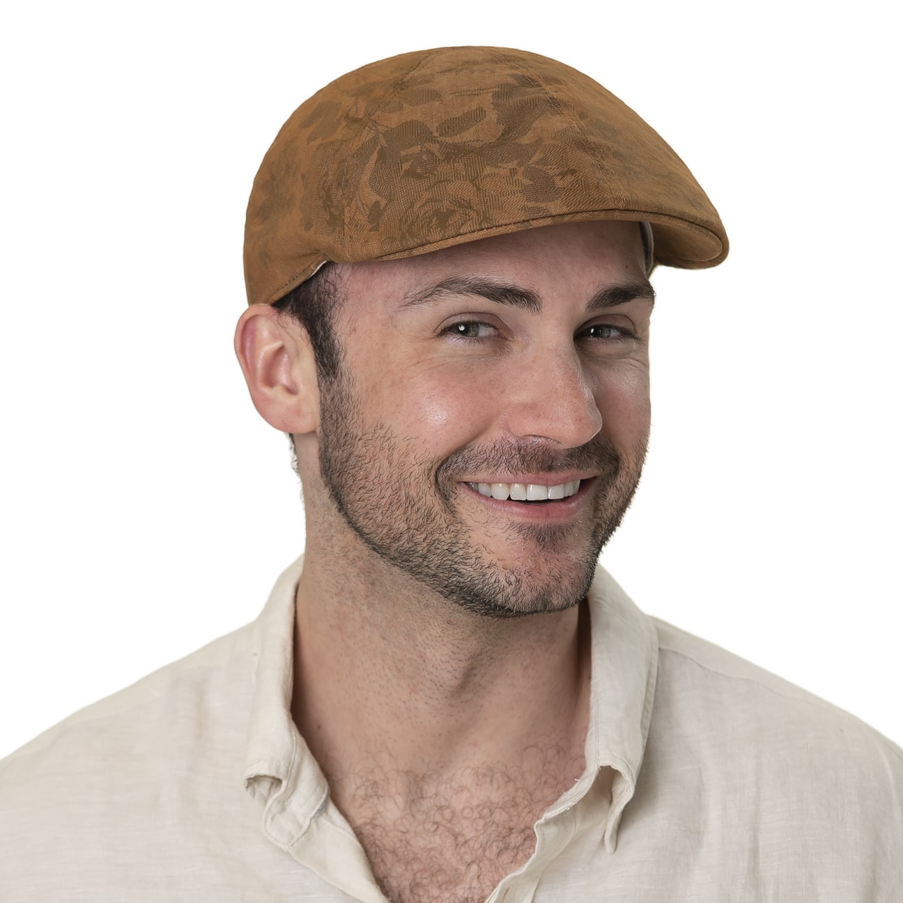 What seems to be a classic flat cap in discreet light-brown turns out, on closer inspection, to be a good mood model with flower power touch. Made from breathable and easy-care linen, this original peaked cap from Bailey 1922 is the ideal headgear for warm summer days. The skin-friendly lining with a high percentage of cotton and linen ensures this.