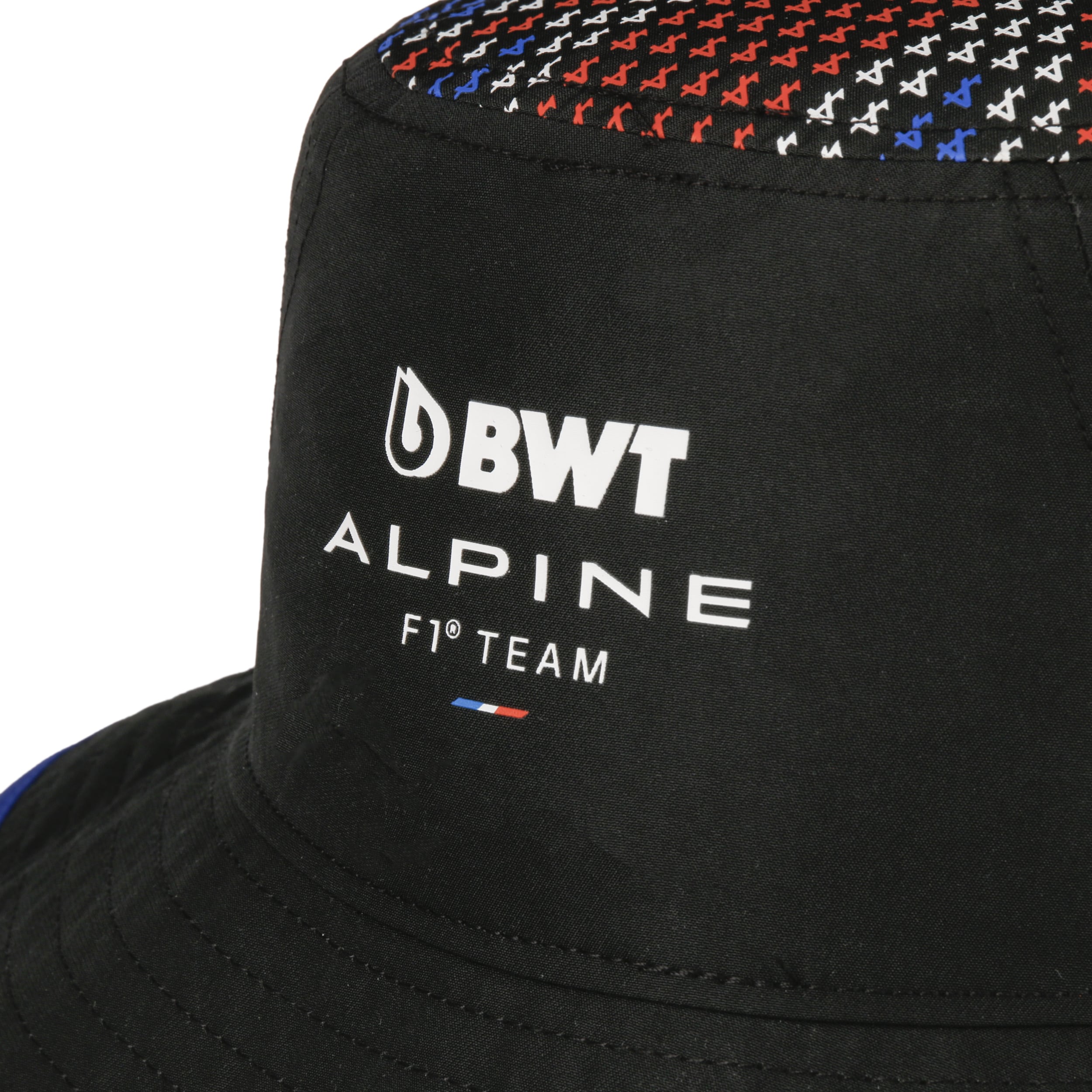 The modern bucket hat from New Era catches the eye with several attractive accents. Strong colour contrasts set the scene for the fan design with which the headwear presents itself in an expressive way. The Union Jack can be seen on the top of the crown - in reference to the British Grand Prix at Silverstone. The front shows a logo embroidery of the F1 team Alpine.