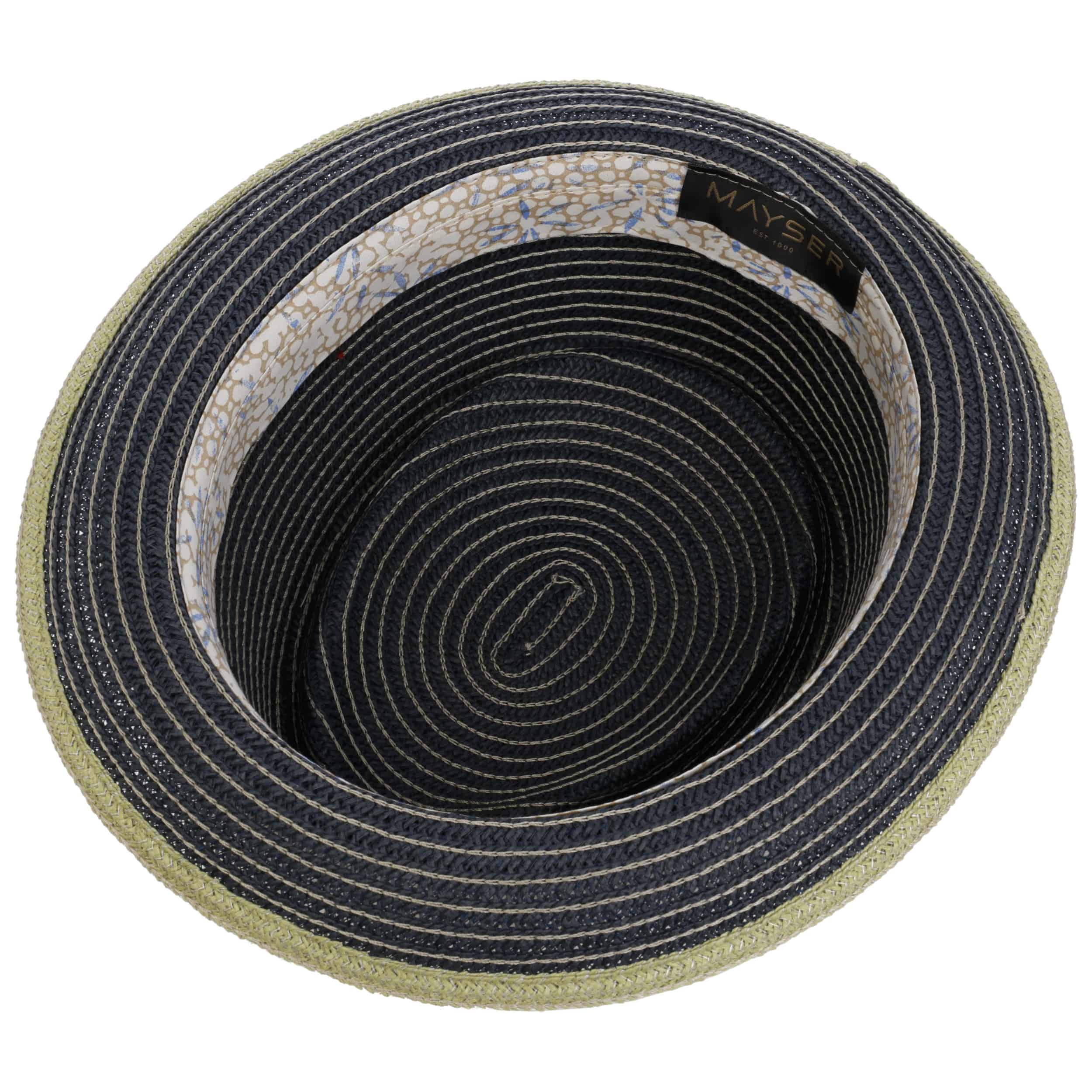 The crown and brim of this handmade hat from Mayser are made up of braids containing a high percentage of paper straw that have been carefully produced by the manufacturer in line with age-old traditions. This plain-coloured model comes in a striking pork pie shape. Contrasting seams and an elegantly striped trim band with a loop adorn the shapely hat. This high quality accessory is the perfect finishing touch for sporty, elegant summer outfits.