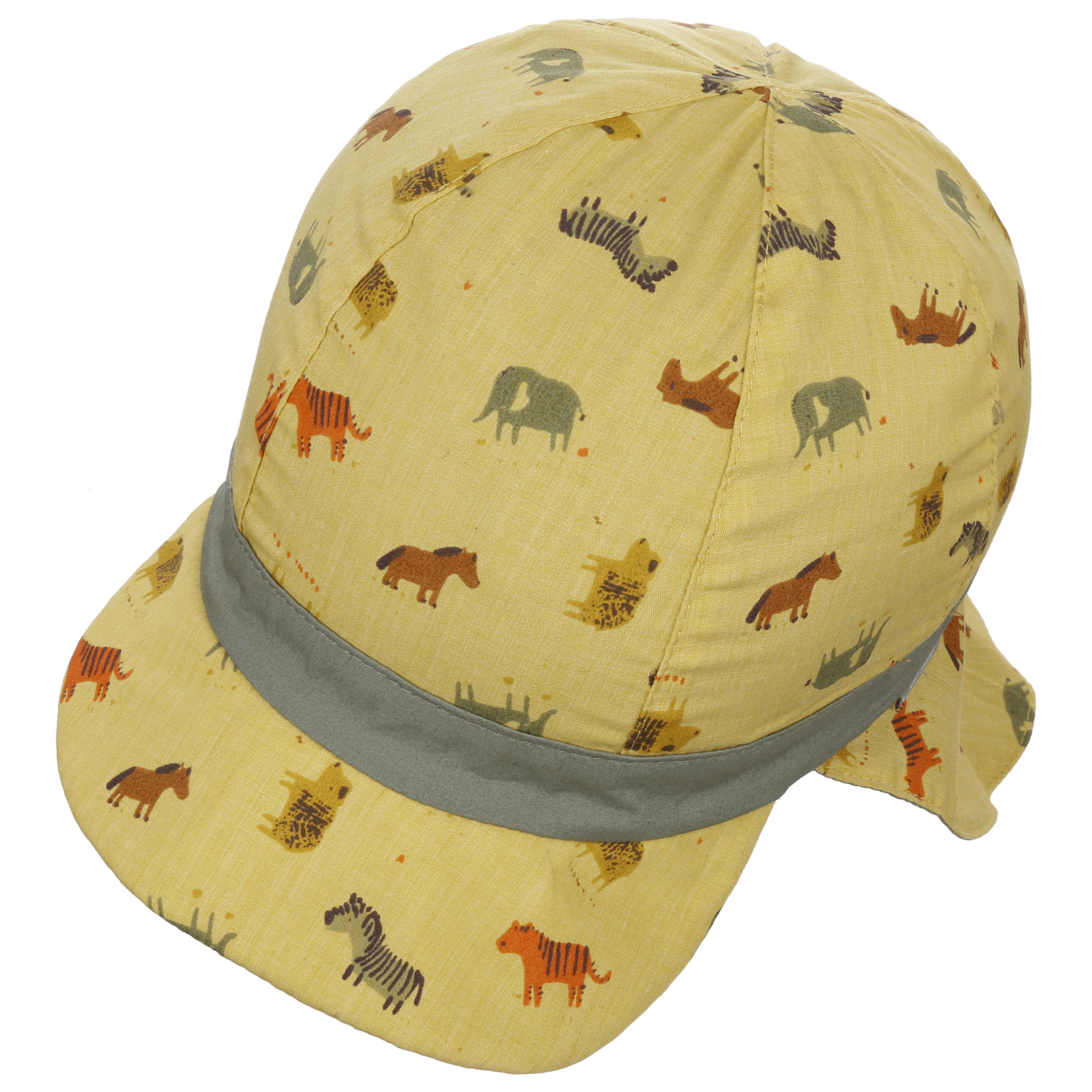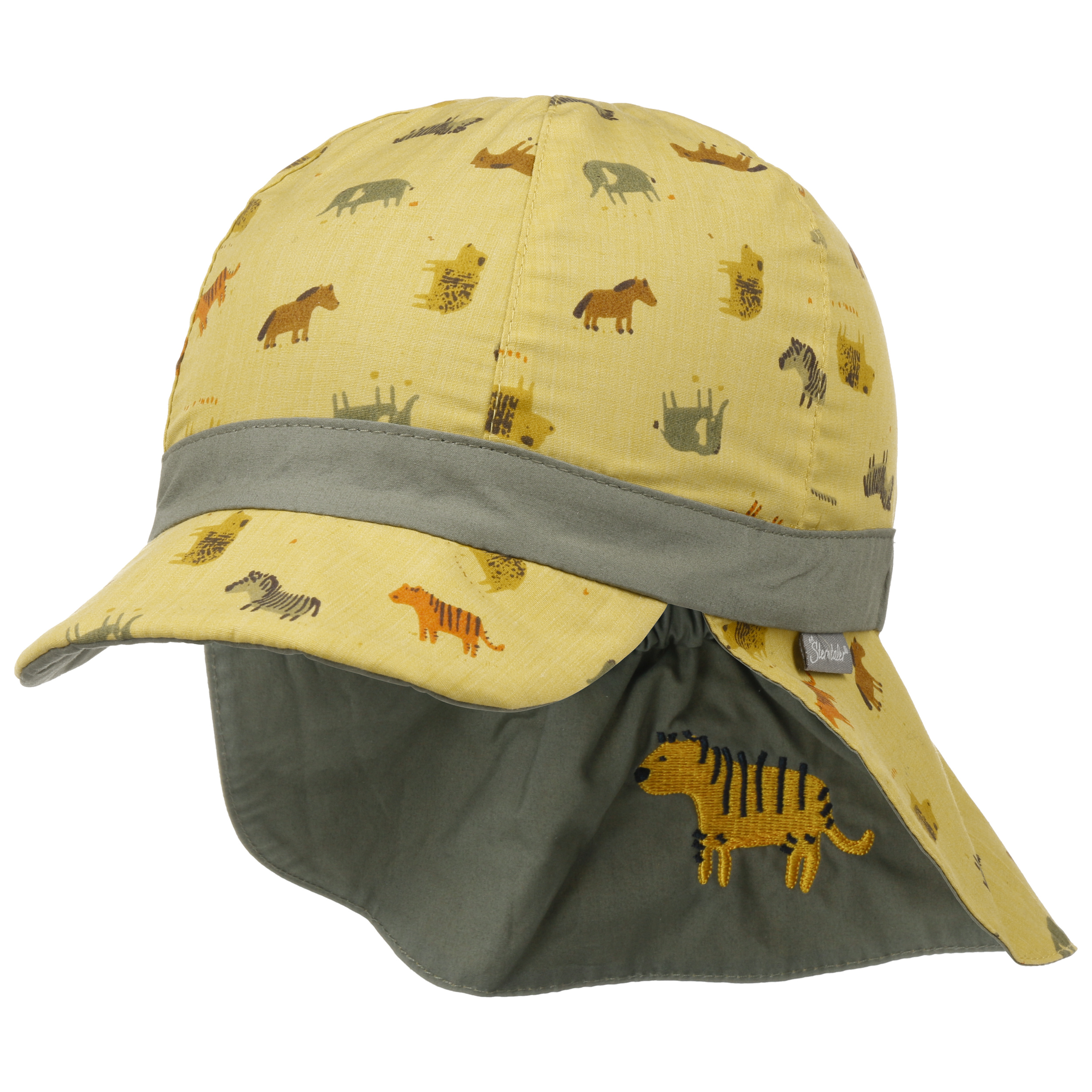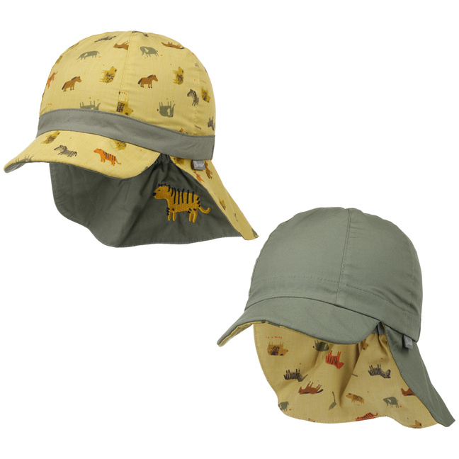 Since 1965, the historic family business from Dornburg-Dorndorf in Hesse, Germany, has been making enchanting toys and textiles for babies and young children. Whether it’s cute woollen hats, headbands, gloves or scarves for the winter or practical hats with neck covers and extra UV protection or trendy flatcaps for the summer – Sterntaler has a wide range of great head coverings and fashion accessories for young children and babies – all made from materials free of harmful substances. A range of fun hand puppets also showcase Sterntaler’s characteristic creativity and attention to detail.- Animals Kids Reversible Cap by Sterntaler - olive 1