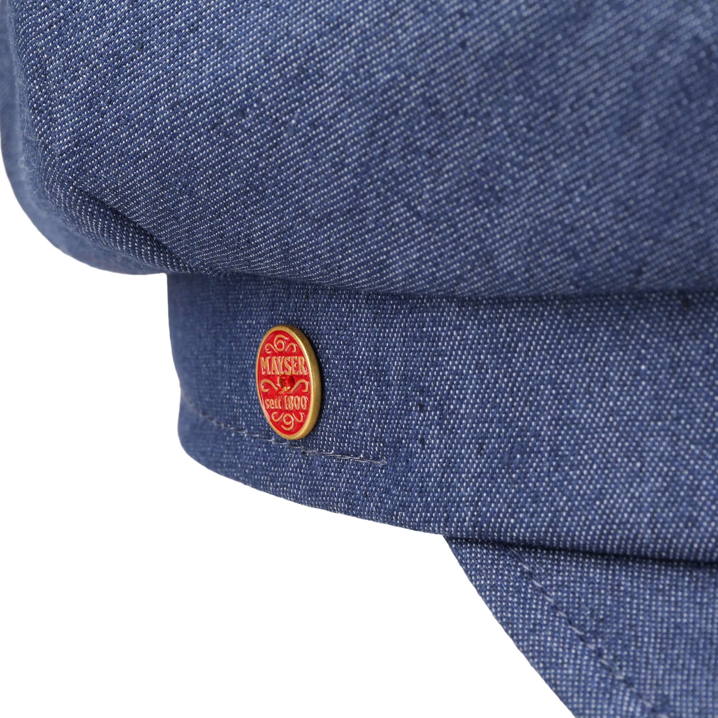 As long-established German company founded in 1800, Mayser has been standing for classic and elegant headwear ever since. First-class workmanship, high-quality fabrics and subtle plays of colours have always been typical characteristics of Mayser's collections. With its officially licensed Indiana Jones hats and sometimes extravagant combinations of styles and fabrics, Mayser knows how to enhance the wardrobe of both elegant men and fashionable women.- Anja Jeans Newsboy Cap by Mayser - denim 1