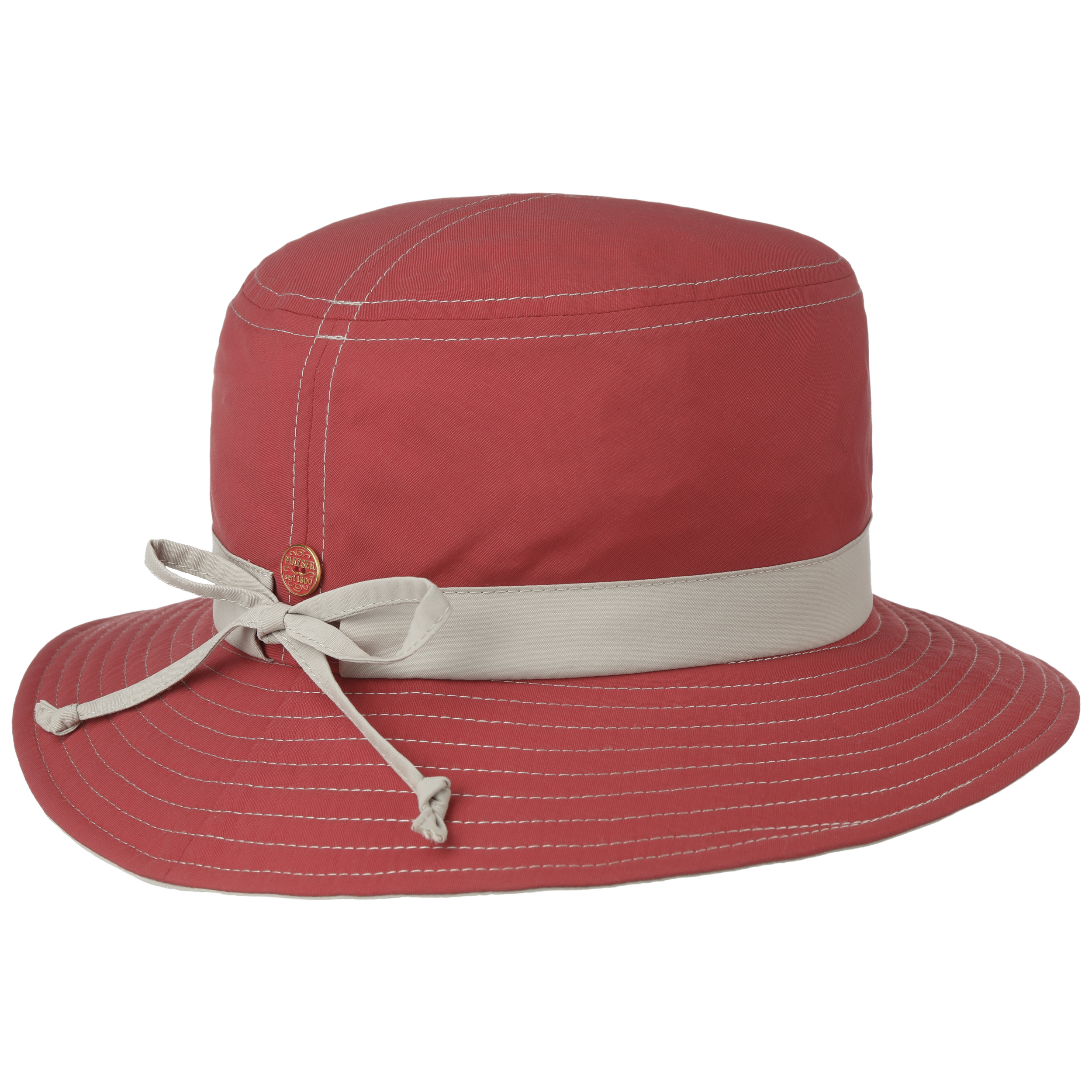 UV factor 60 protection makes this bucket hat from Mayser the ideal companion for sunny summer days. Its adjustable hat band ensures a perfect fit. Fine contrasting seams and a contrast-coloured trim band give the functional outdoor hat a fashionable finish. This crushable bucket hat is the ideal choice for outdoor leisure activities such as fishing, working in the garden, and hiking.