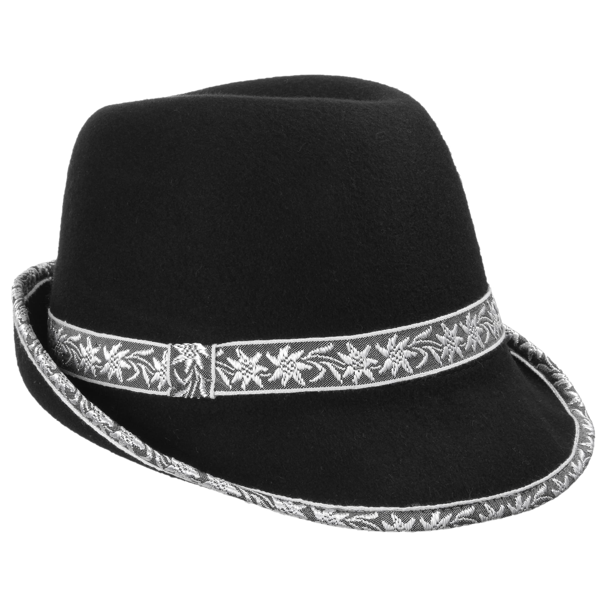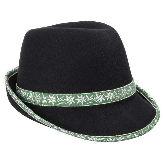 The narrow trim and the edging with edelweiss motif are the eye-catching highlights on this ultra-lightweight, rain and dirt-repellent traditional hat for men. Made of 100% wool felt, this trilby with narrow brim can be worn year-round and is a must for festive occasions - be it in the Schützenzelt or at Oktoberfest. Looks great with rustic lederhosen or a traditional shirt.