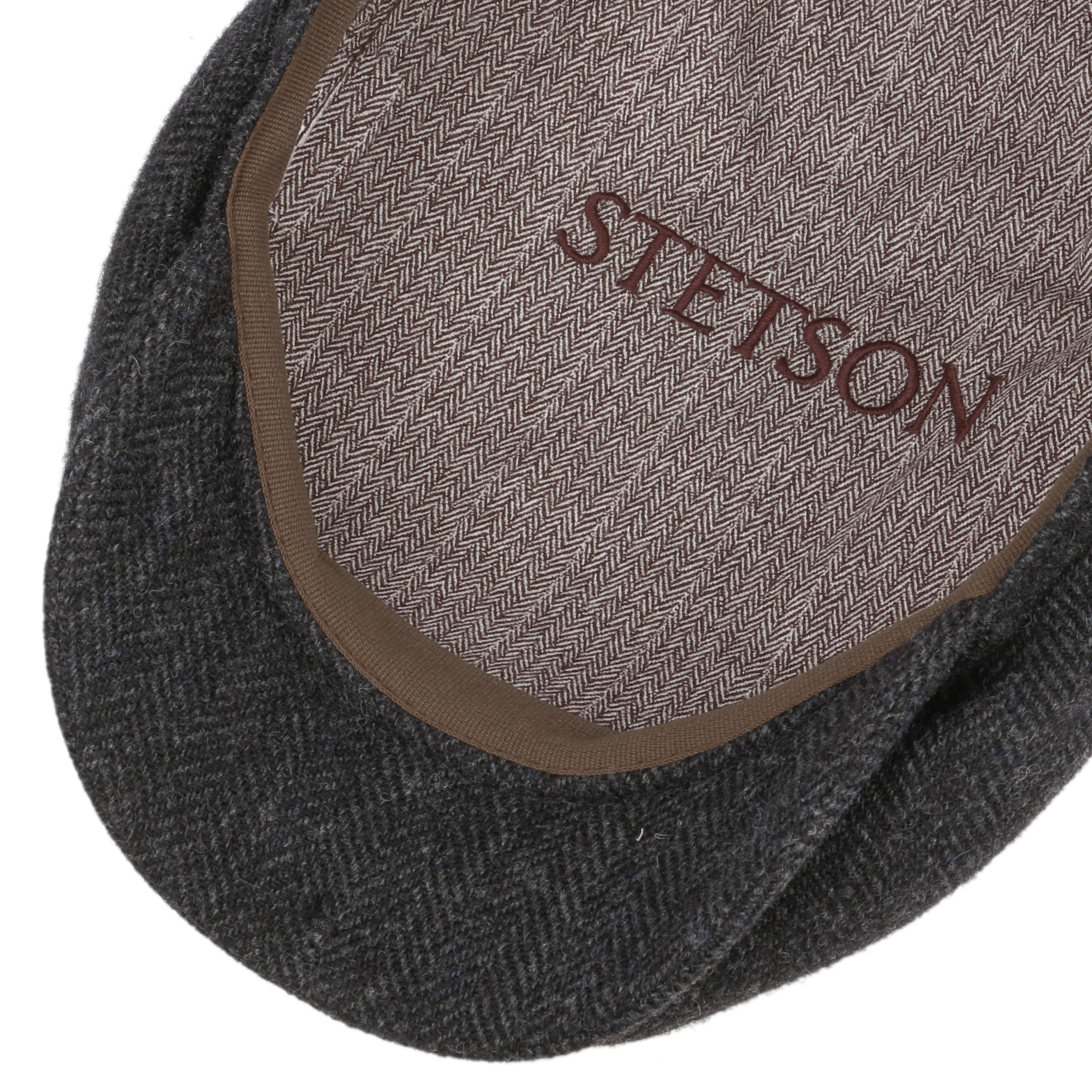 The high quality wool blend in this form-fitting flat cap from Stetson allows every man to stride through the colder months of the year with a warm head. Comfortable quality and with an elegant herringbone pattern, the felted soft flat cap meets all the requirements that you can ask of a fashionable winter hat.