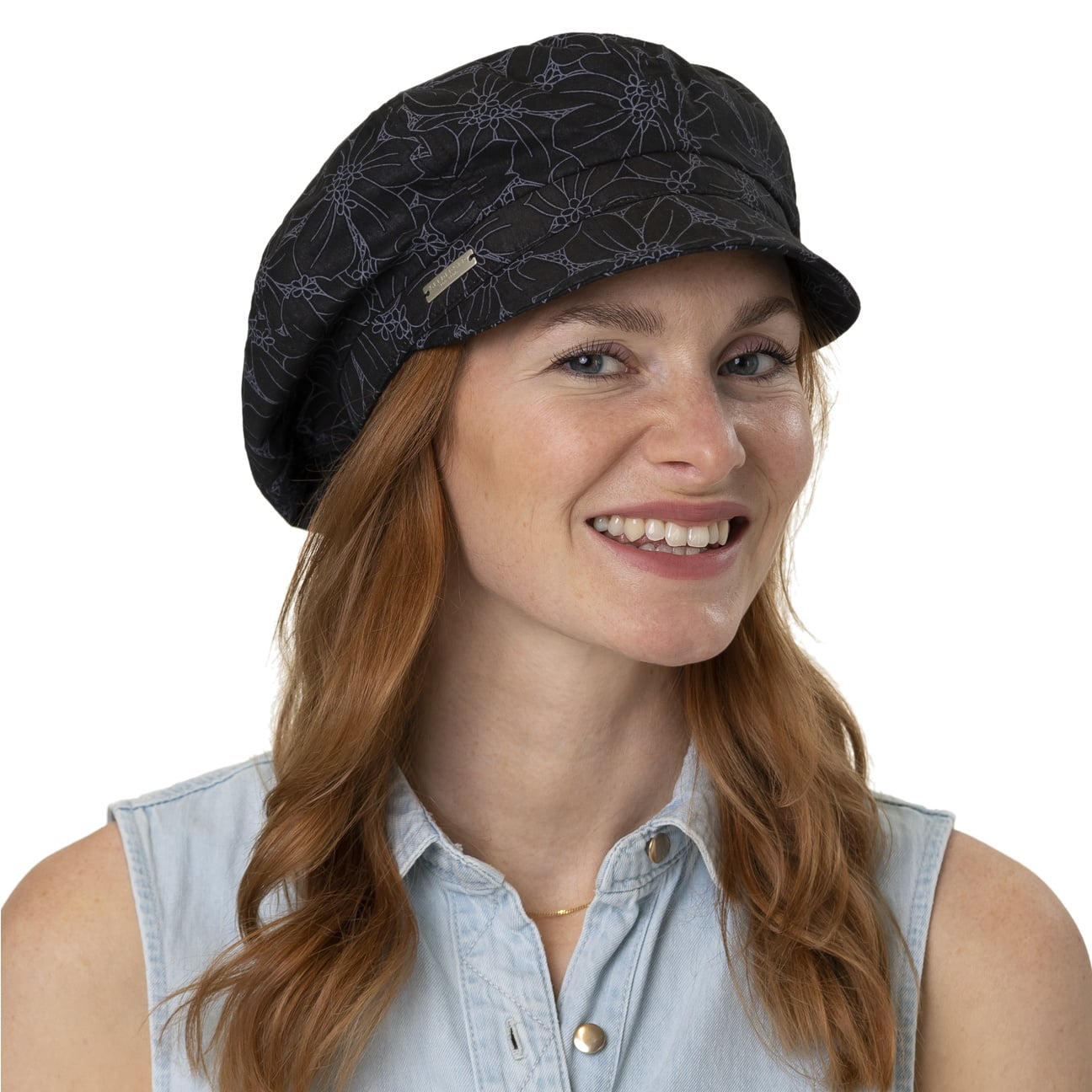 With its lush flower pattern, the baker boy cap from Seeberger is all about summer. It is made from a lightweight blended fabric with a high cotton content that helps keep the head cool. Cotton is also a comfort-enhancing component in the lining. The bright cap can be washed by hand so that it sits radiantly fresh on your head at all times.