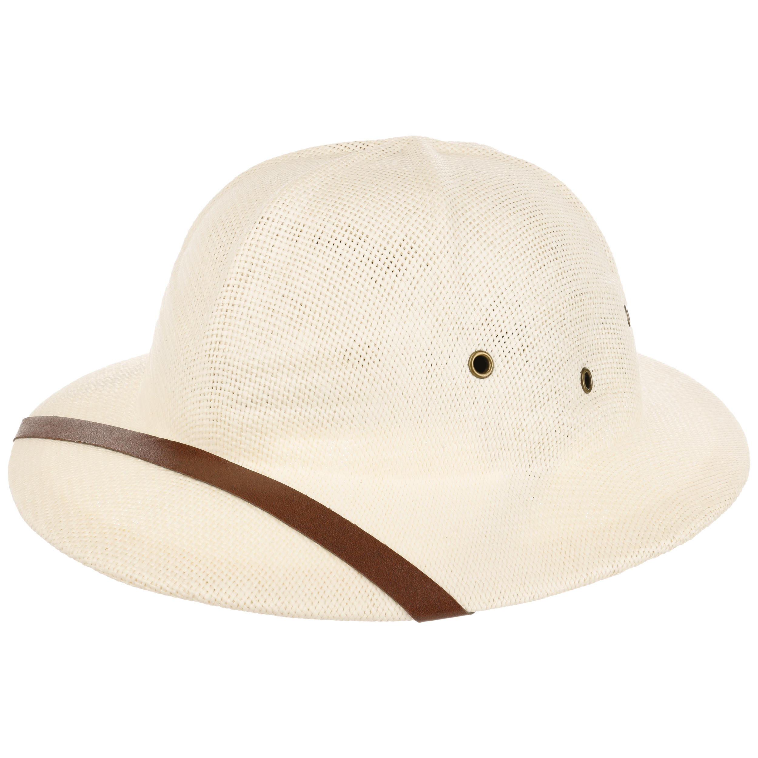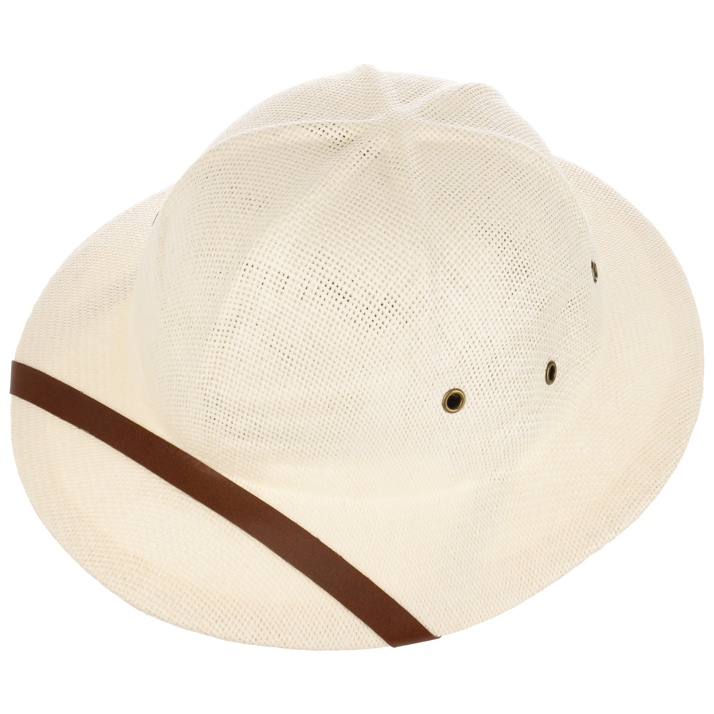 This handmade pith helmet from Conner protects your head on journeys of discovery in the jungle and on hikes through the desert. The outdoor hat is made of 100% natural straw and features factor 50 UV protection. While it prevents sunburn, metal ventilation eyelets allow a fresh breeze to reach the head. There is a hook-and-loop-closure inside the inner band for size adjustment.