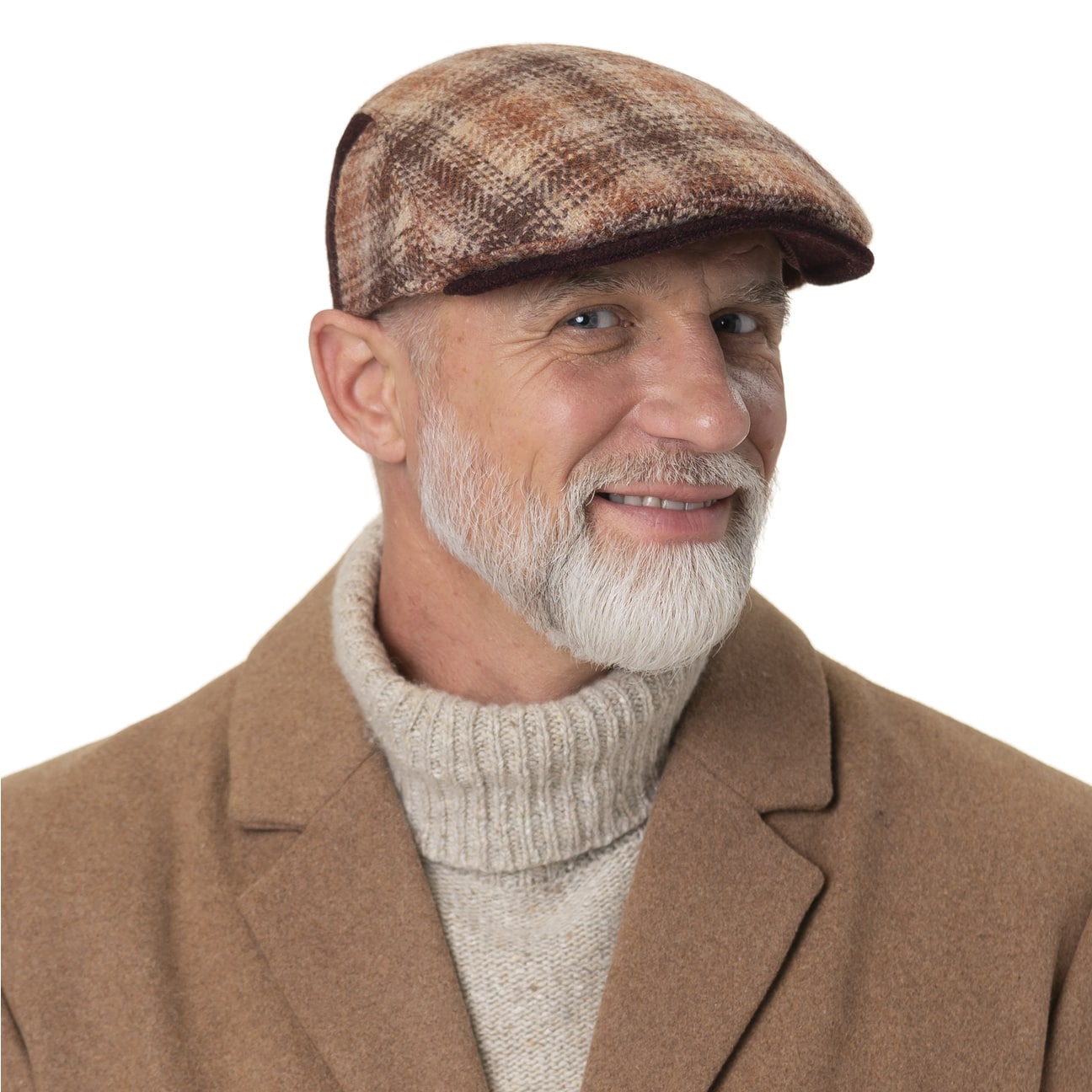 The five-piece flat cap from Lierys is handcrafted from a fabric containing new wool and wool. It features a beautiful check pattern in pleasant shades to match its good warming properties. This is accompanied by plain-coloured sections on the sides of the crown and the plain-coloured peak. The breathable lining with a high cotton content ensures comfort when worn.