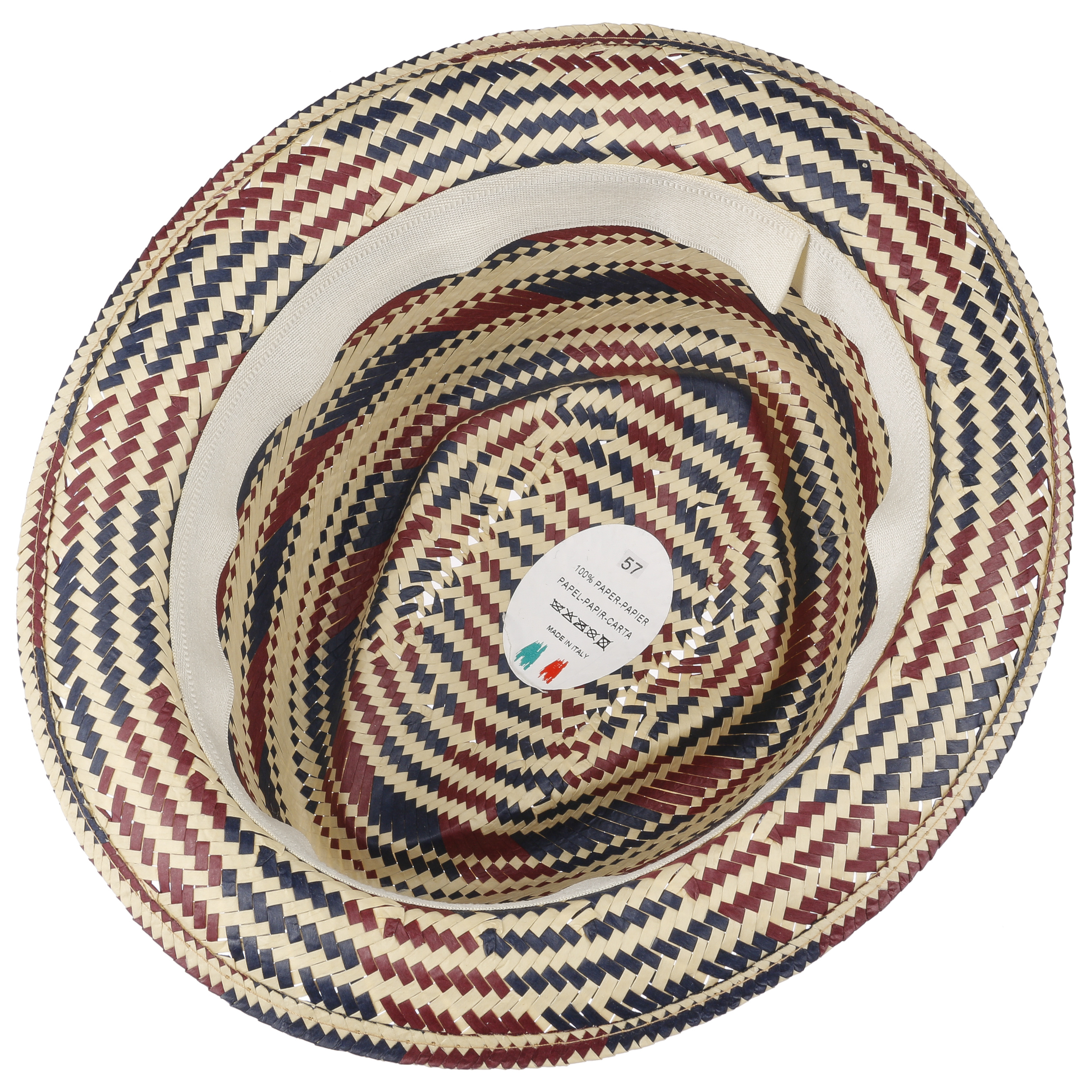 Striking, charming and impressive - this Italian-made straw hat from Lipodo inspires with its multifaceted design. The classic-looking shape of a pork pie hat gives the headgear a sense of timeless elegance, while the woven pattern in contrasting colours looks dynamic and modern. The extravagant look is rounded off by the carefree appearance of 100% paper straw.