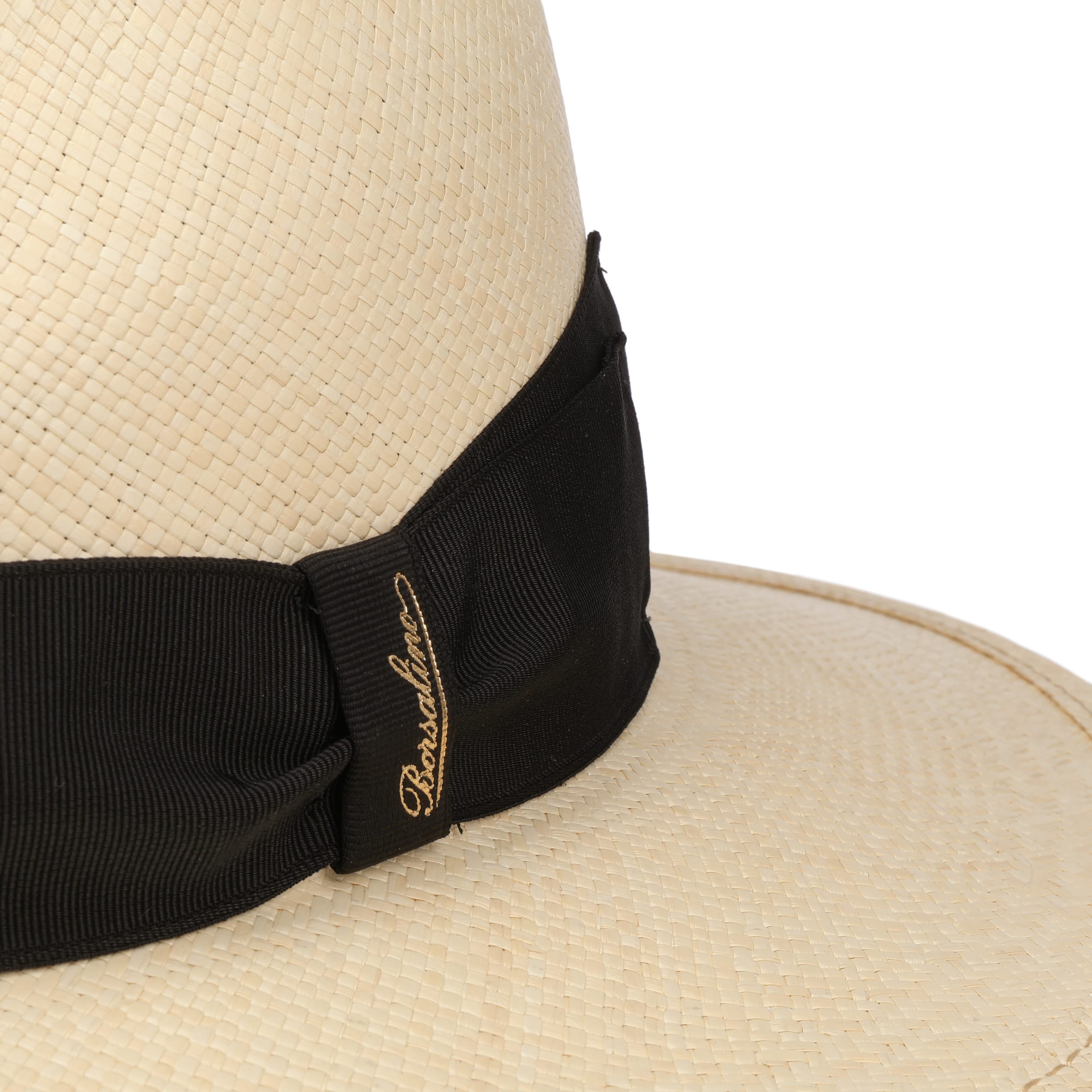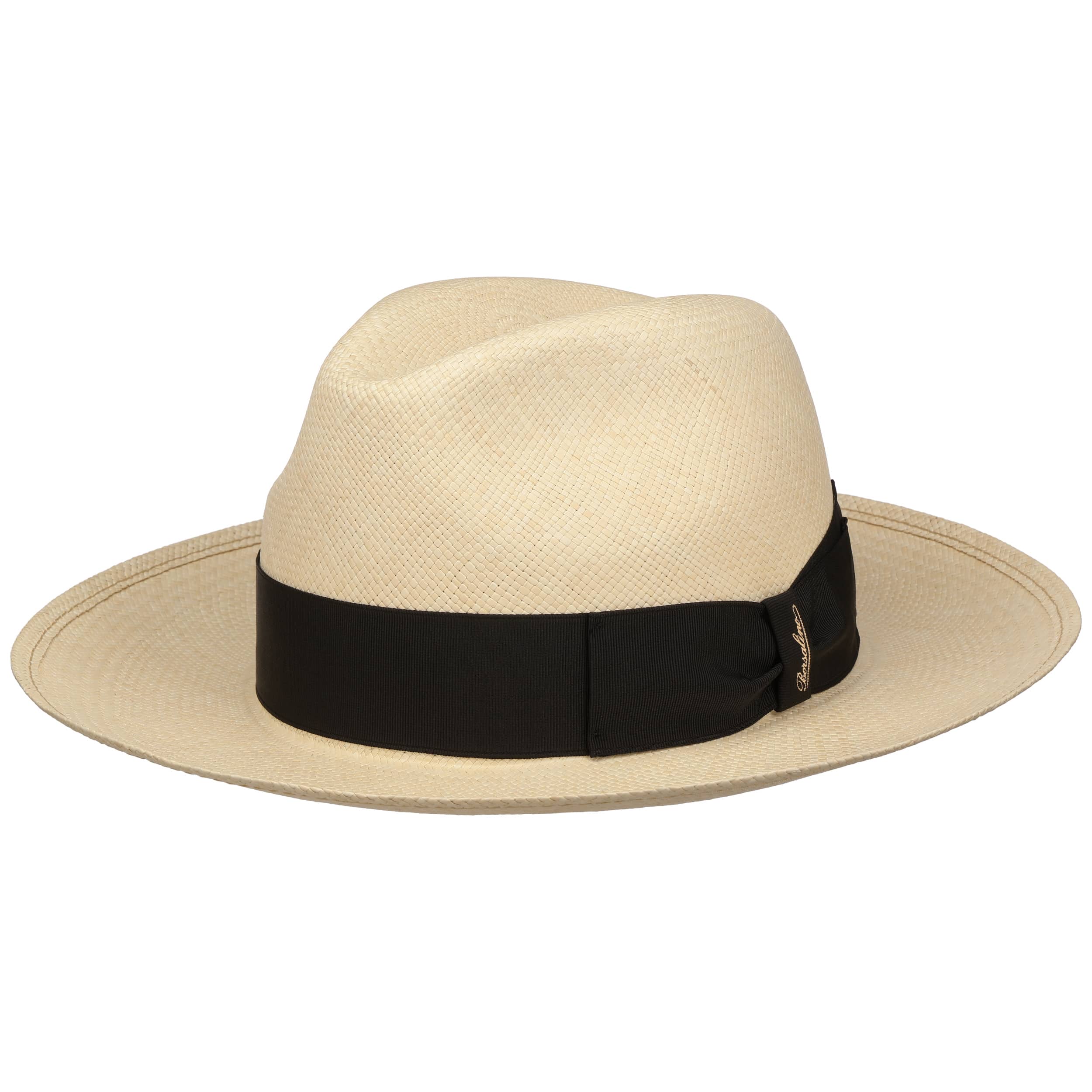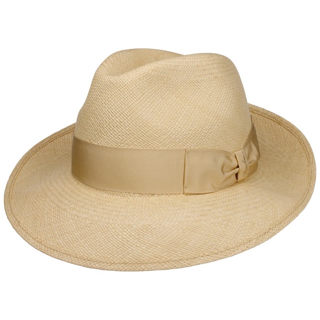 The Italian high-quality brand became famous for its fedoras made from precious lapin and beaver fur. Since 1857, Borsalino has been producing finest handmade, water repellent and ultralight headwear. International celebrities such as Al Capone and Humphrey Bogart made the "hat of the hats" a timeless classic. The company, meanwhile, has added other styles to its selection, e.g. first-rate flat caps and fashionable Panama hats as well as elegant women's styles.- Big Brim Fedora Straw Hat by Borsalino - nature-black 1