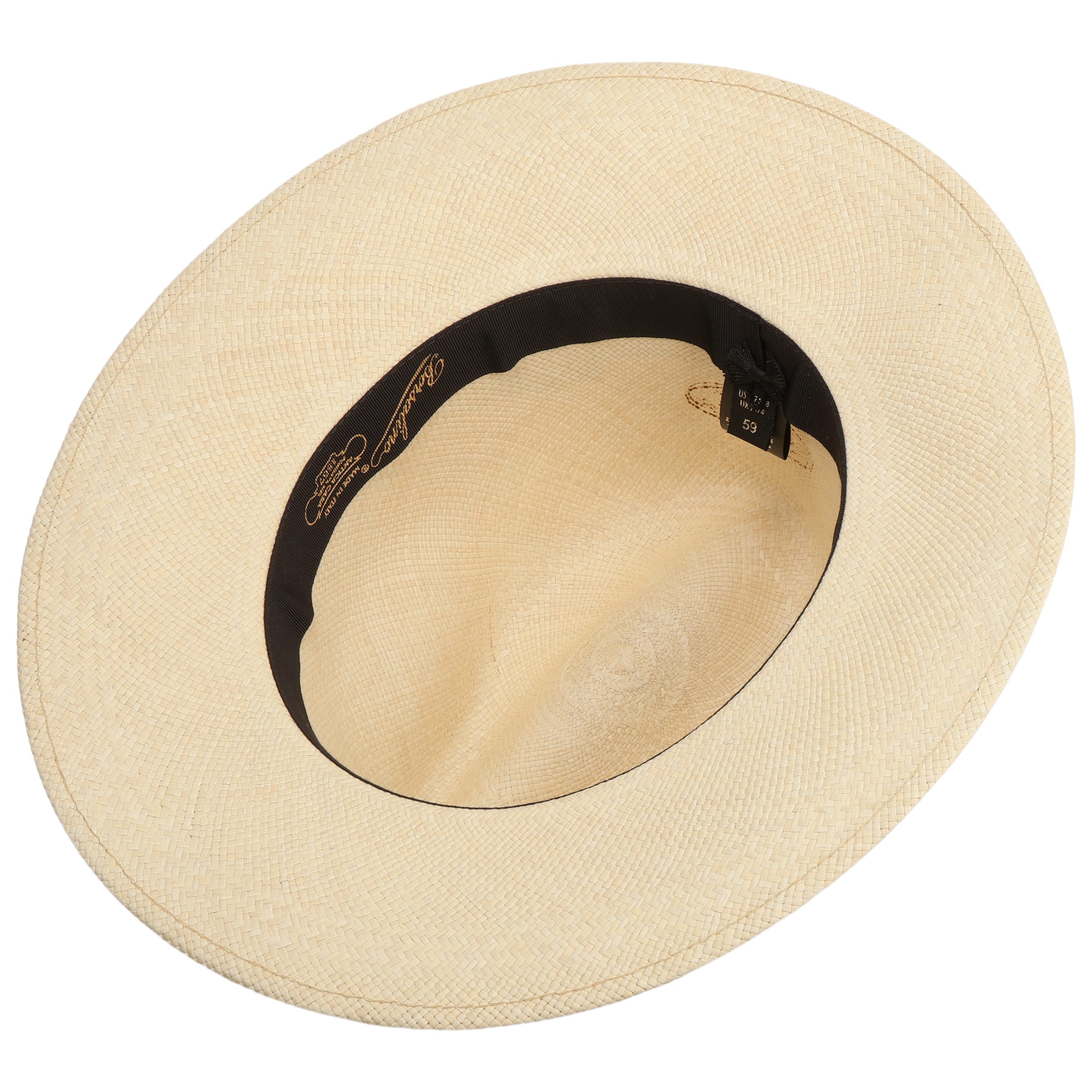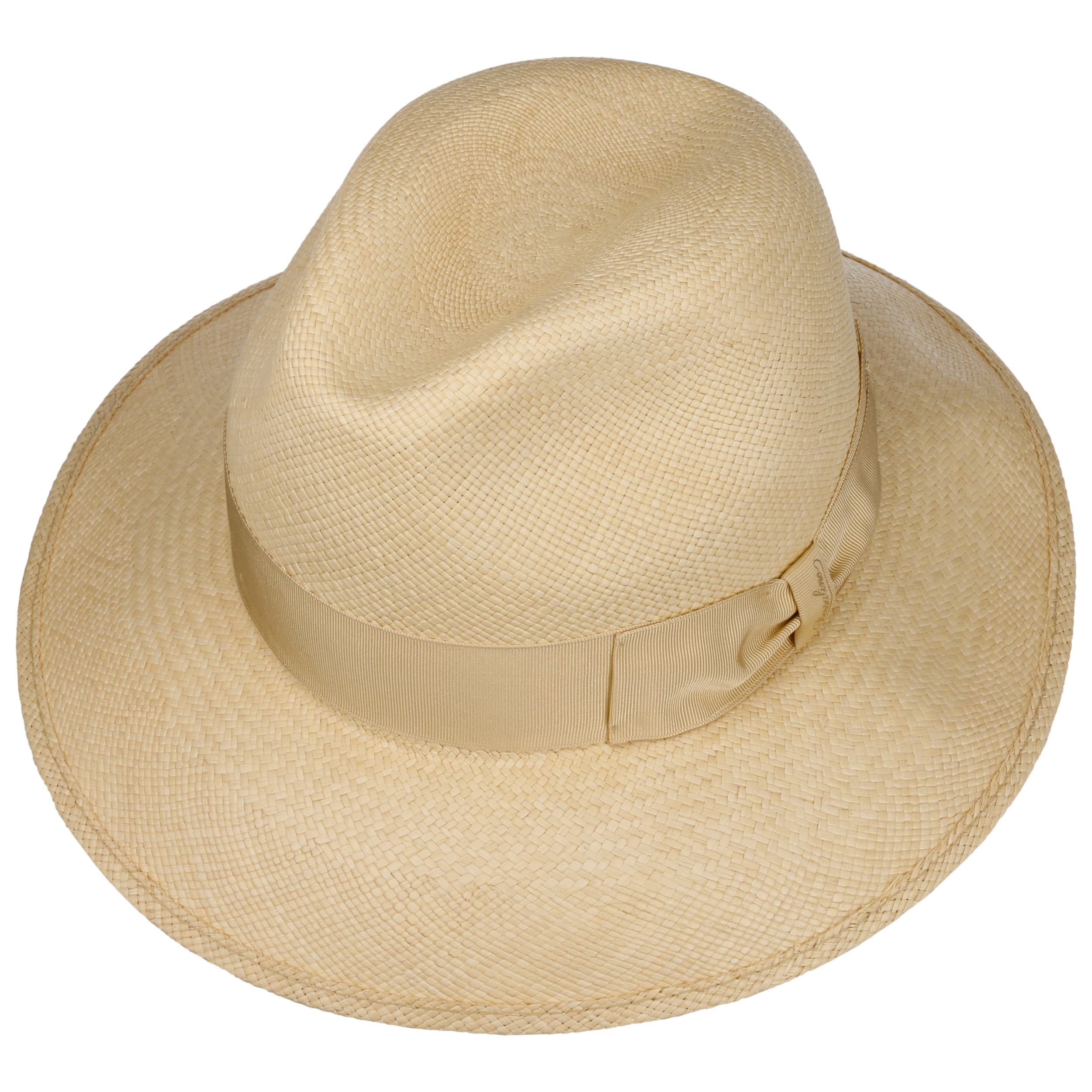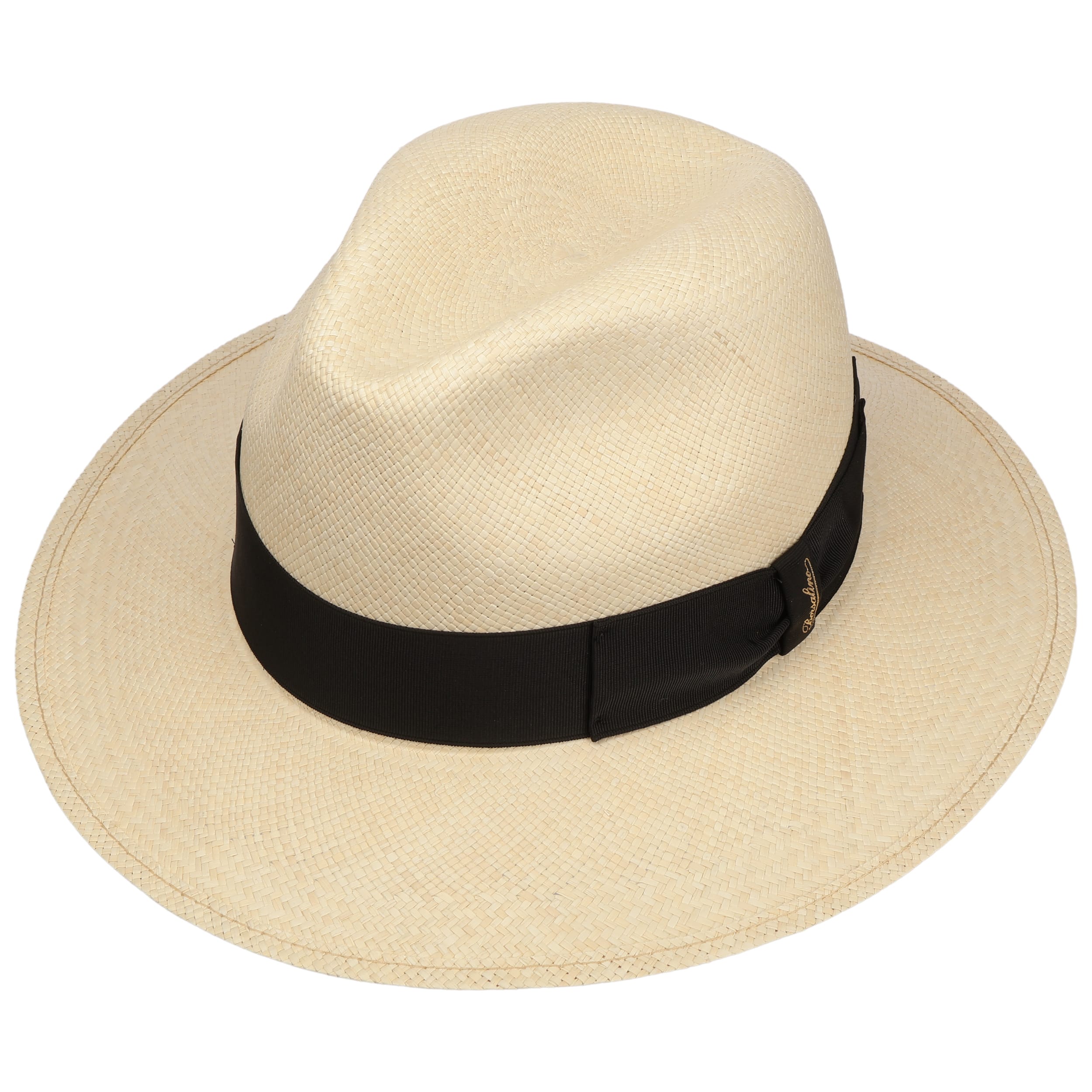 The Italian high-quality brand became famous for its fedoras made from precious lapin and beaver fur. Since 1857, Borsalino has been producing finest handmade, water repellent and ultralight headwear. International celebrities such as Al Capone and Humphrey Bogart made the "hat of the hats" a timeless classic. The company, meanwhile, has added other styles to its selection, e.g. first-rate flat caps and fashionable Panama hats as well as elegant women's styles.- Big Brim Fedora Straw Hat by Borsalino - nature-black 1