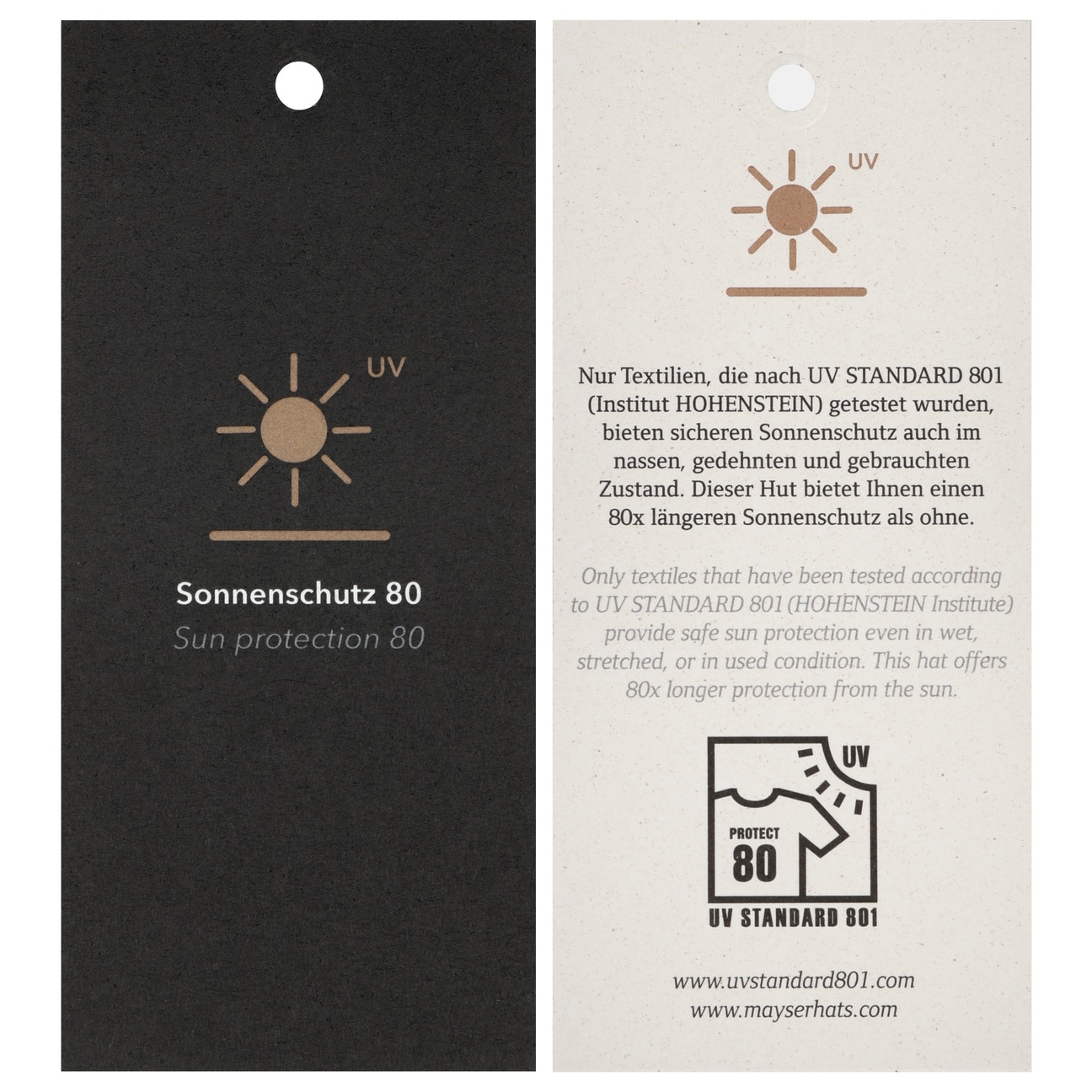 - Tested according to UV STANDARD 801 (Hohenstein)