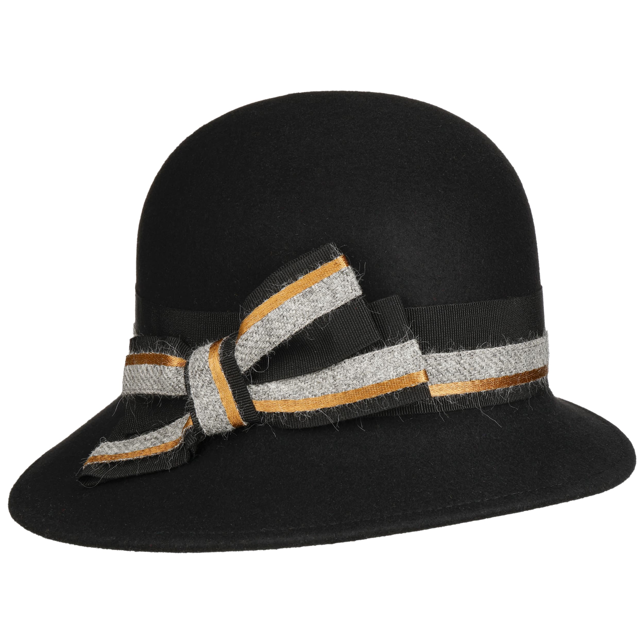 This classically shaped cloche hat from bedacht will enchant you with its feminine charm and timeless shape. Made from warm, high-quality wool, this women’s hat is ideal for stylish outfits on cool autumn and winter days. A finely crafted, multi-coloured grosgrain ribbon with a decorative bow adds a lovely detail and underlines its elegant character. Made in Italy, the delicate design promises an extremely comfortable fit.