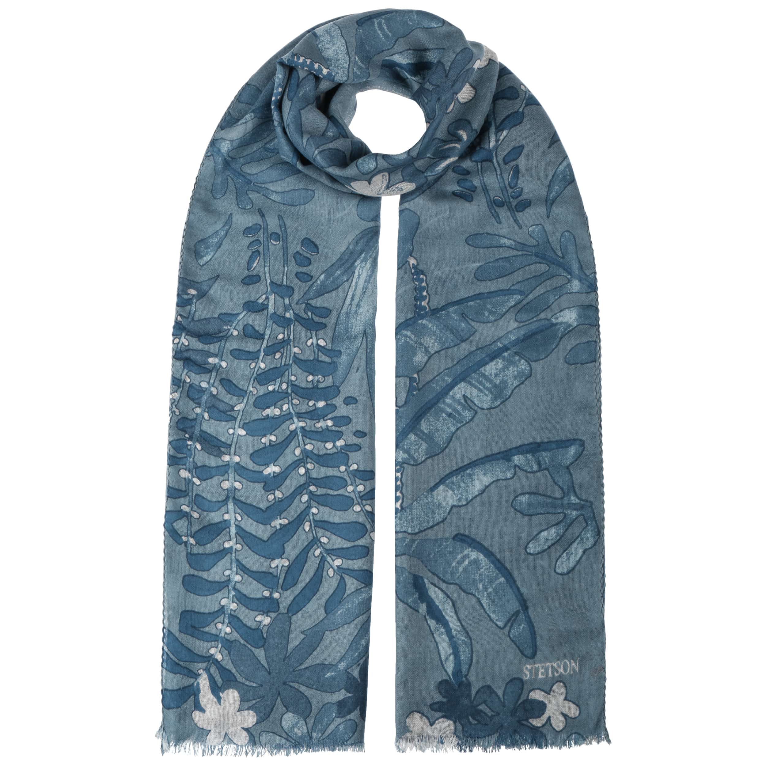 Since 1865, the name of John B. Stetson has been a synonym for best quality cowboy and Western hats. With the increasingly popular VitaFelt and VitaStraw collections, the U.S. brand has become pioneer of lightweight, water repellent and packable headwear. In the meantime, Stetson manufactures a wide range of first-class styles: army and baseball caps, flat hats, docker caps, beanies, trilbies and cowboy hats in many different designs.- Botanicals Summer Scarf by Stetson - blue 1