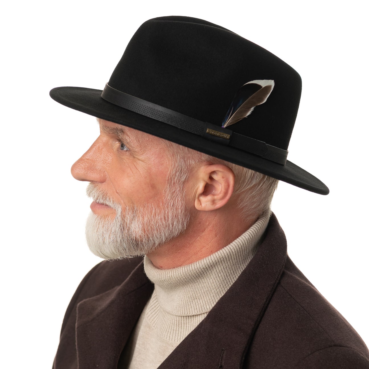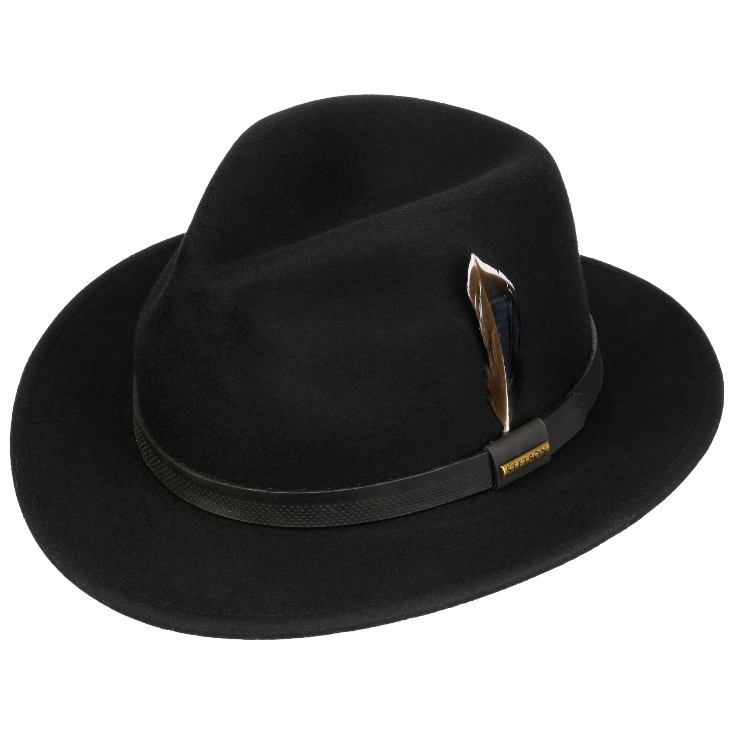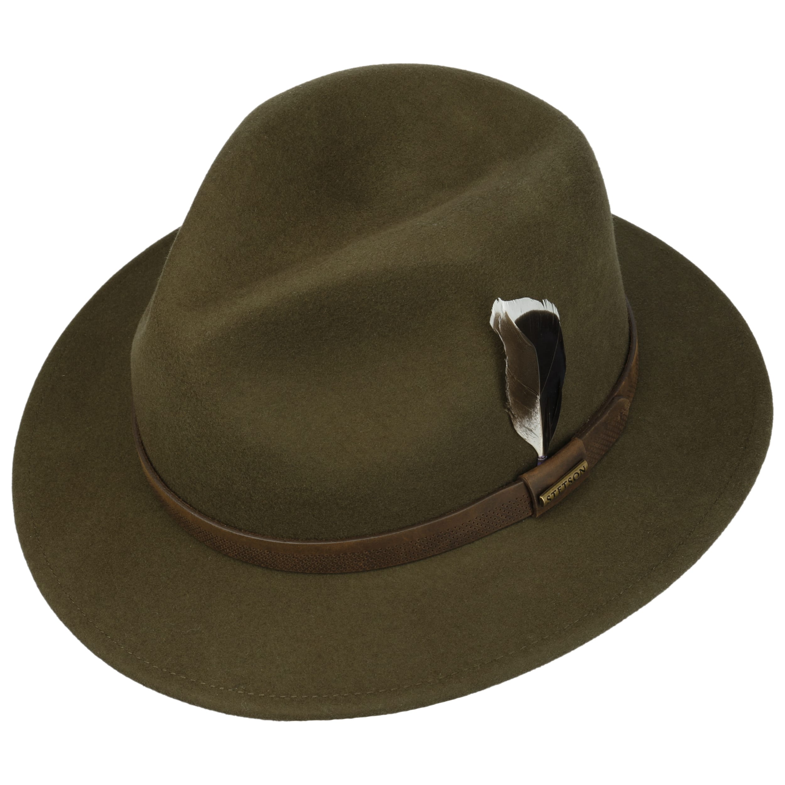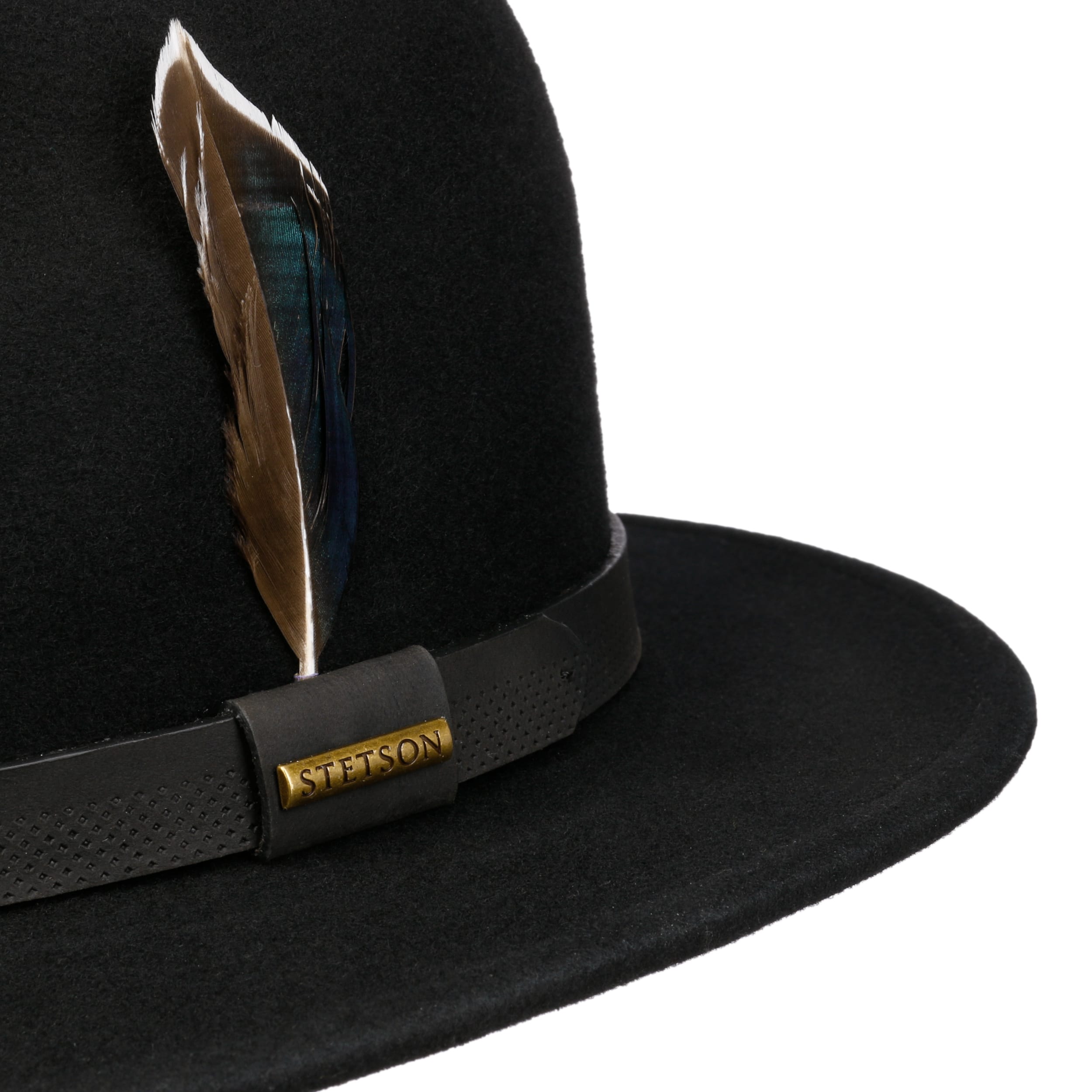 The traveller hat reinterprets the fedora silhouette with a charismatic brim and accompanies style-conscious explorers through city and countryside. Stetson uses high-quality, mulesing-free wool felt with an innovative Asahi Guard® coating that protects against wind and moisture, while the crushable felt hat always retains its shape. A soft cotton lining on the inside ensures a comfortable fit all year round. The perforated leather trim band with decorative feather adds a touch of sophistication.