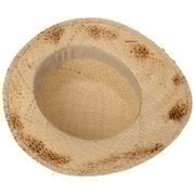 This Lipodo hat is based on the classic Biedermeier bonnet shape and comes in an unusual and fashionable design. Made of summery, lightweight straw, this sun hat has a brim that, much like a visor, is longer at the front to provide shade. Attractive colouring similar to a western style is enhanced by the leather trim with rustic decoration.
