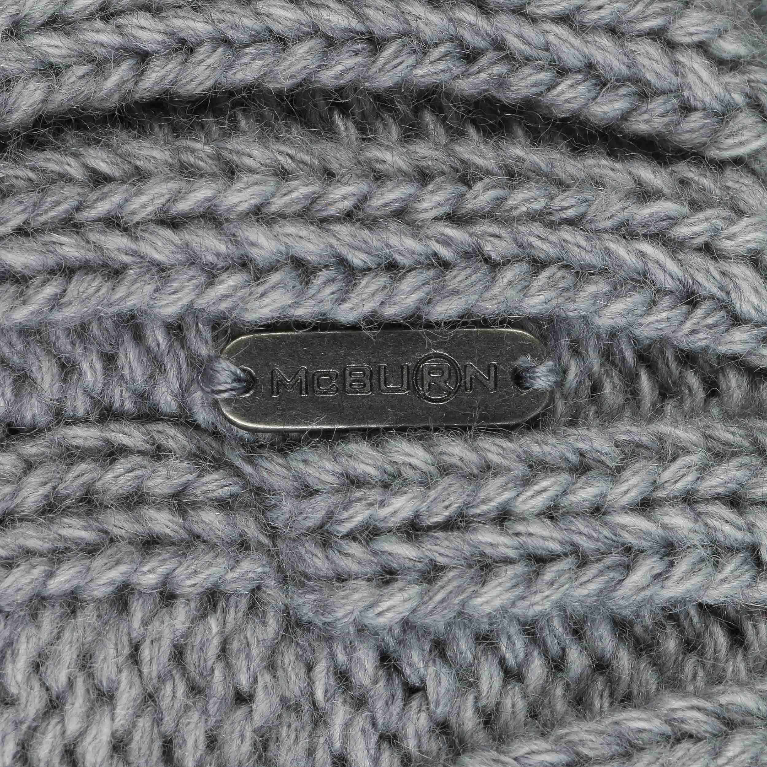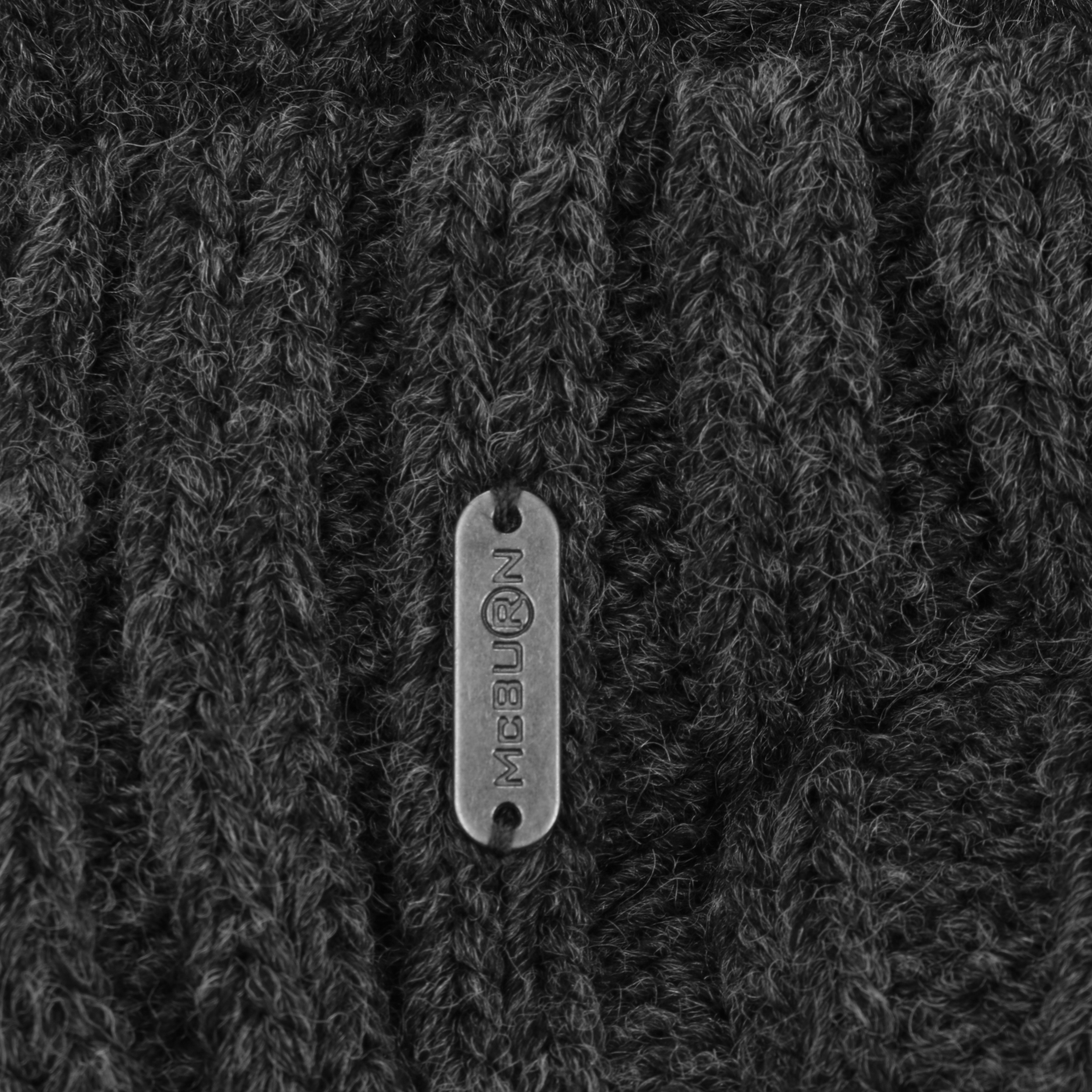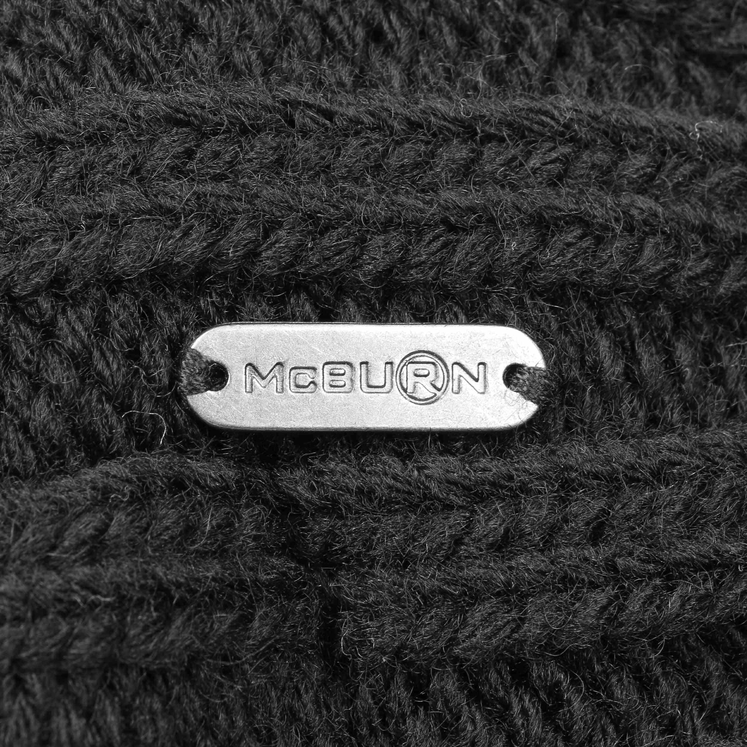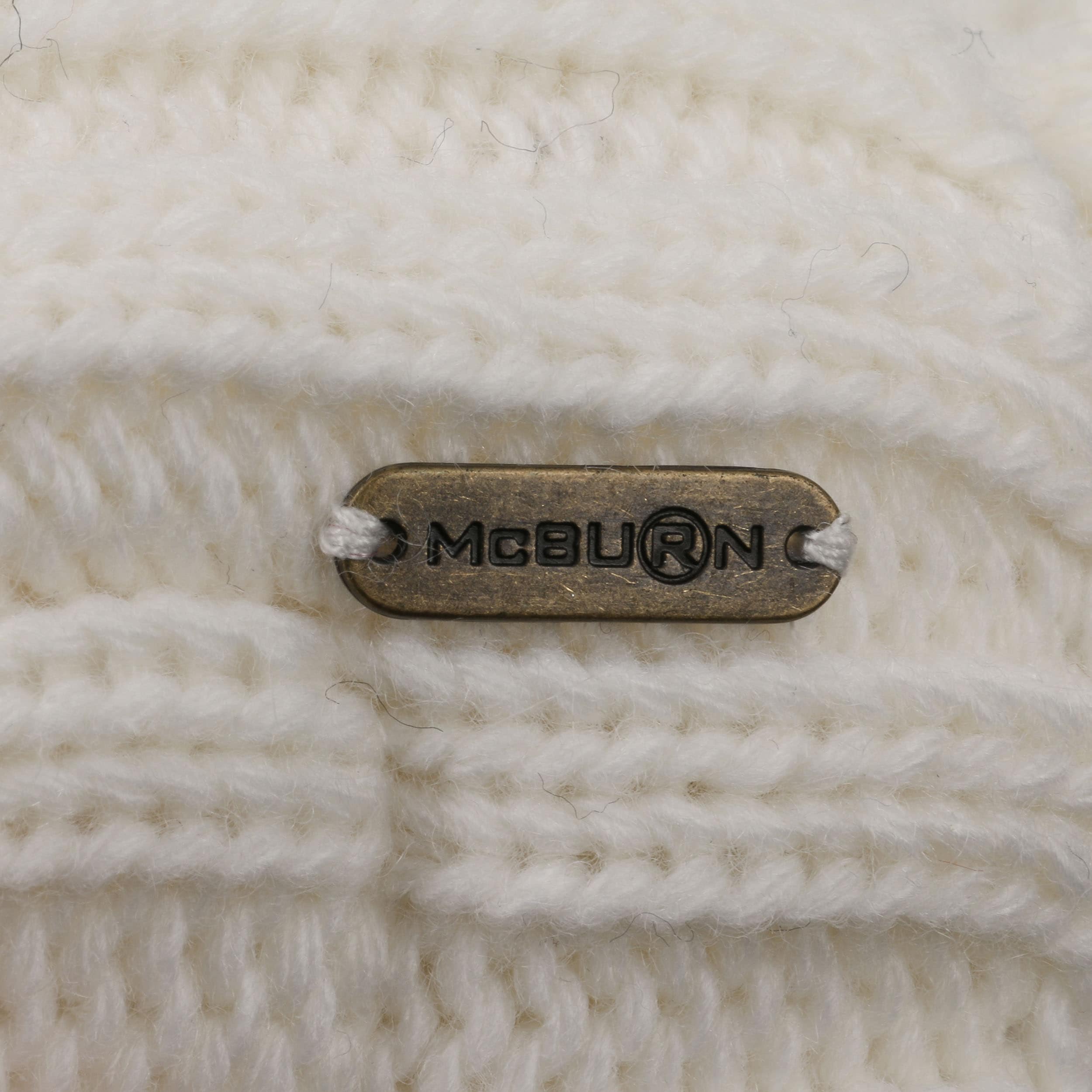 An ultra stylish beanie from McBURN with sporty charm: The hat contains warm wool, has a plain-coloured design, a rib knit brim to protect the ears and fashionable visor, above which rises a cable knit pattern – this feature and the smooth fabric lining are the main arguments for choosing this winter hat. A fluffy imitation fur pompom on the top invites you to feel good.