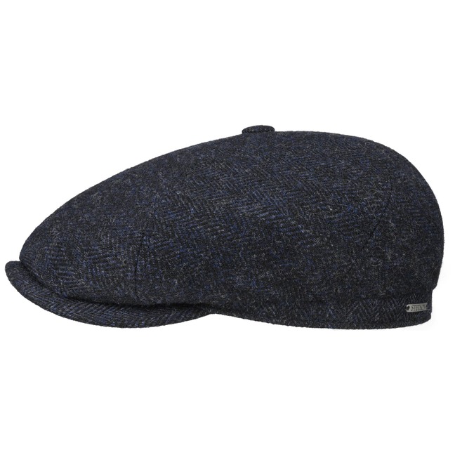 - Brooklin Black Herringbone Flat Cap by Stetson - black-blue 2