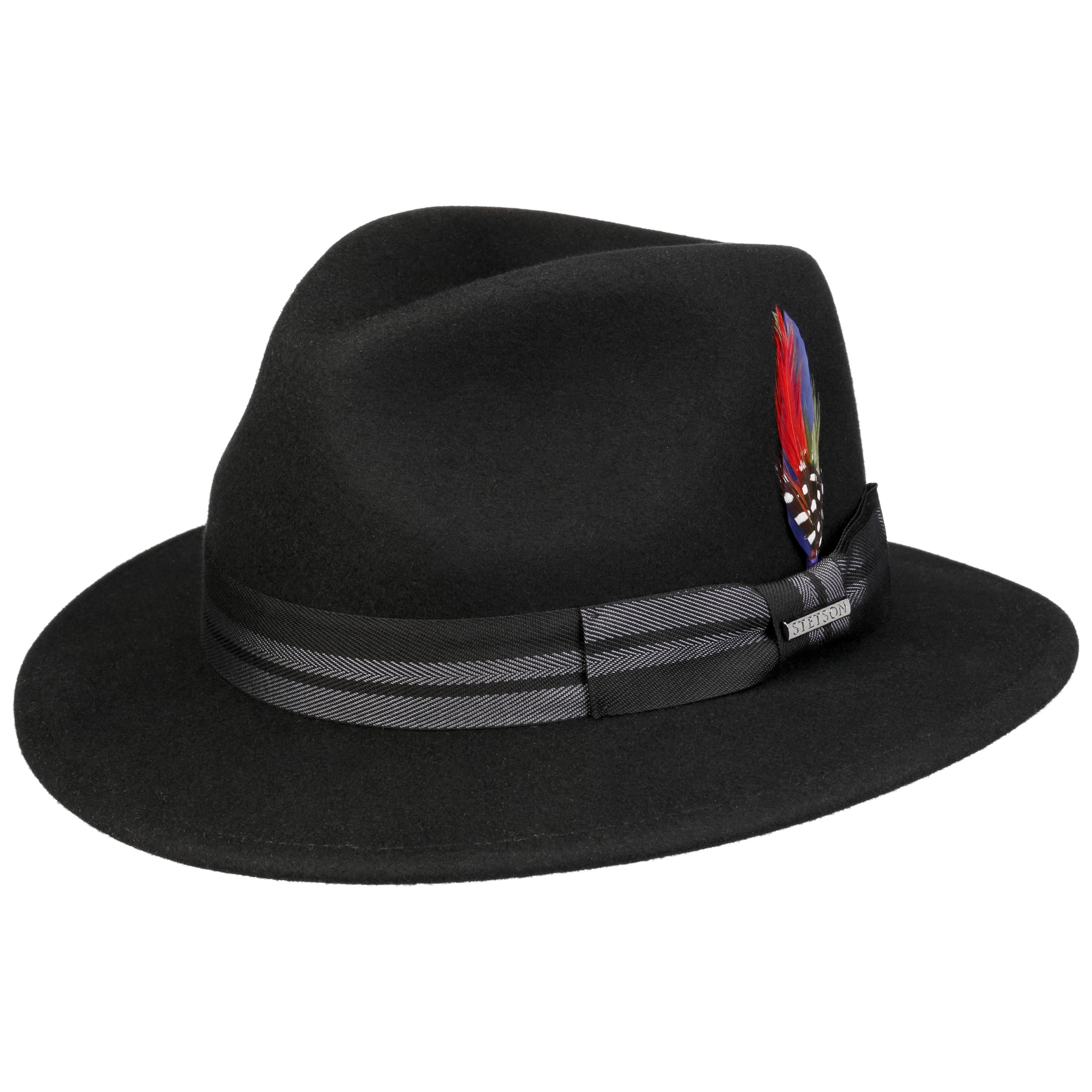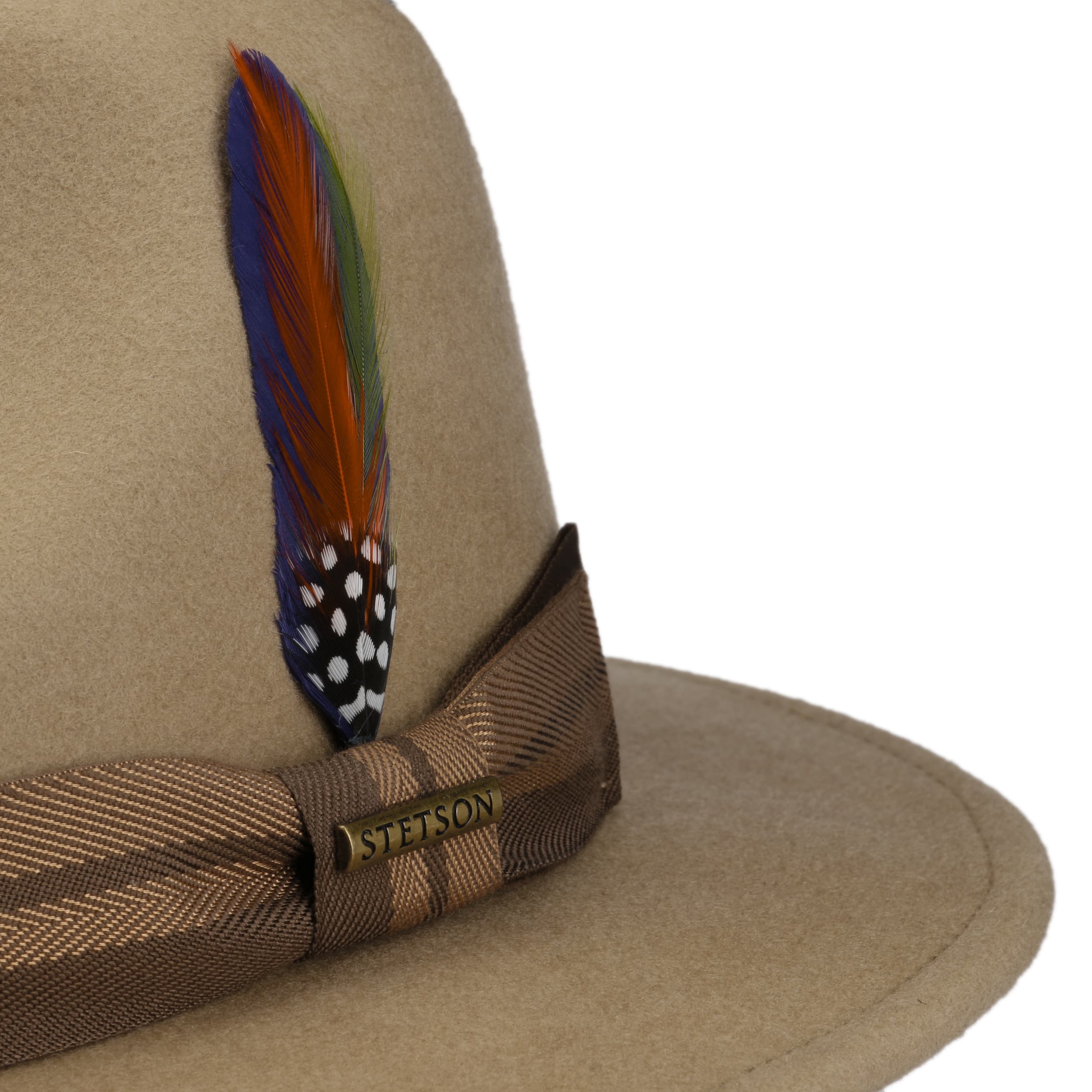 With its classic, distinctive traveller shape and sweeping brim, this hat will see you through autumn and winter. The renowned Stetson brand combines original outdoor tradition with modern standards: High-quality wool felt with Asahi Guard® makes the hat weatherproof and non-slip, while the soft cotton lining band makes it comfortable to wear. The fine trim band and a colourful feather add stylish accents and make every look unique.