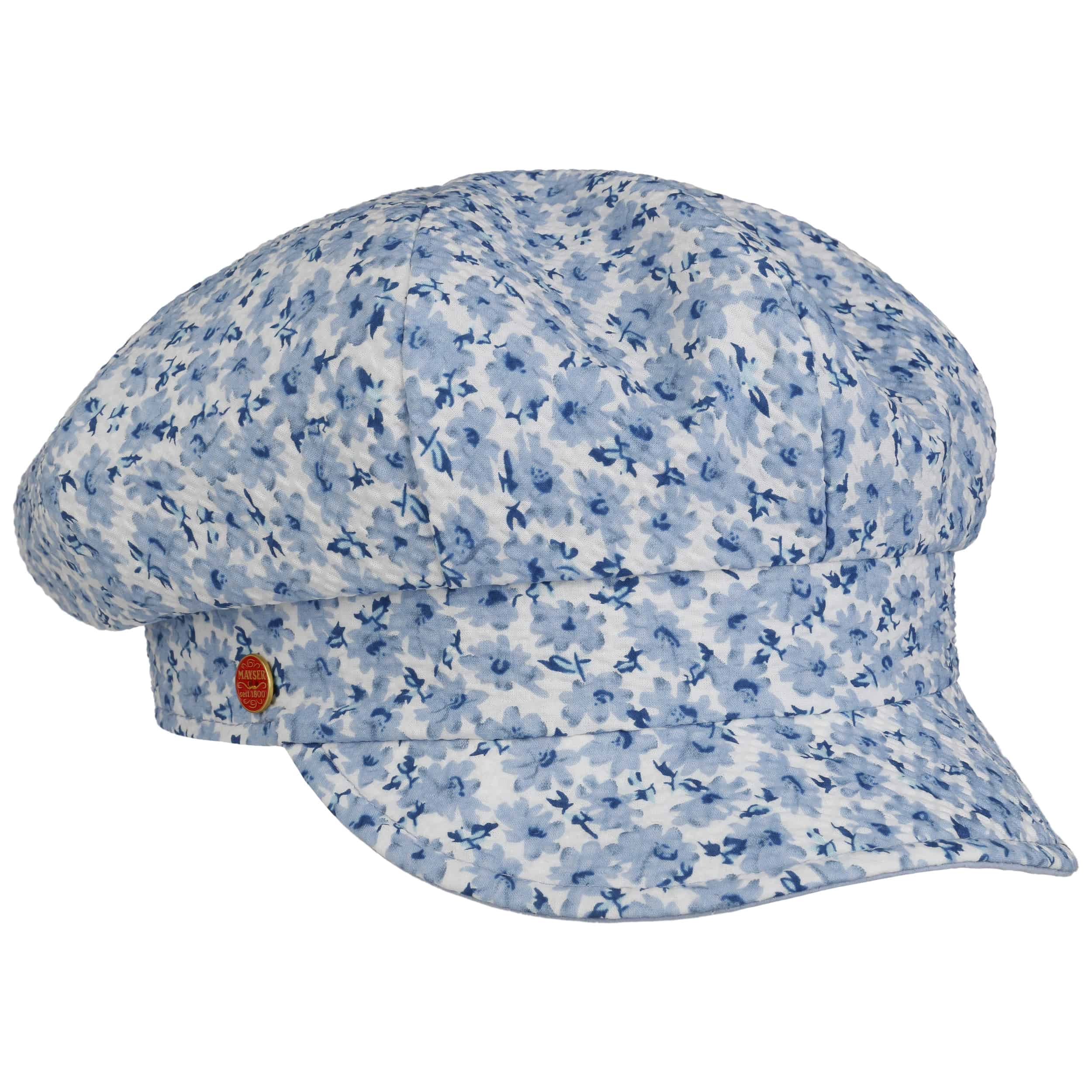As long-established German company founded in 1800, Mayser has been standing for classic and elegant headwear ever since. First-class workmanship, high-quality fabrics and subtle plays of colours have always been typical characteristics of Mayser's collections. With its officially licensed Indiana Jones hats and sometimes extravagant combinations of styles and fabrics, Mayser knows how to enhance the wardrobe of both elegant men and fashionable women.- Camilla Flowers Reversible Newsboy Cap by Mayser - blue 1