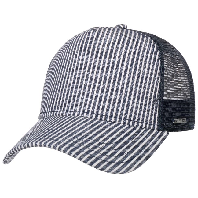 With its sporty stripes and sun-bleached effect this comfortable trucker cap from Stetson looks perfect in the warmer months. Thanks to the pure cotton content and airy mesh section at the back, this trendy cap is also pleasantly comfortable to wear on hot days.