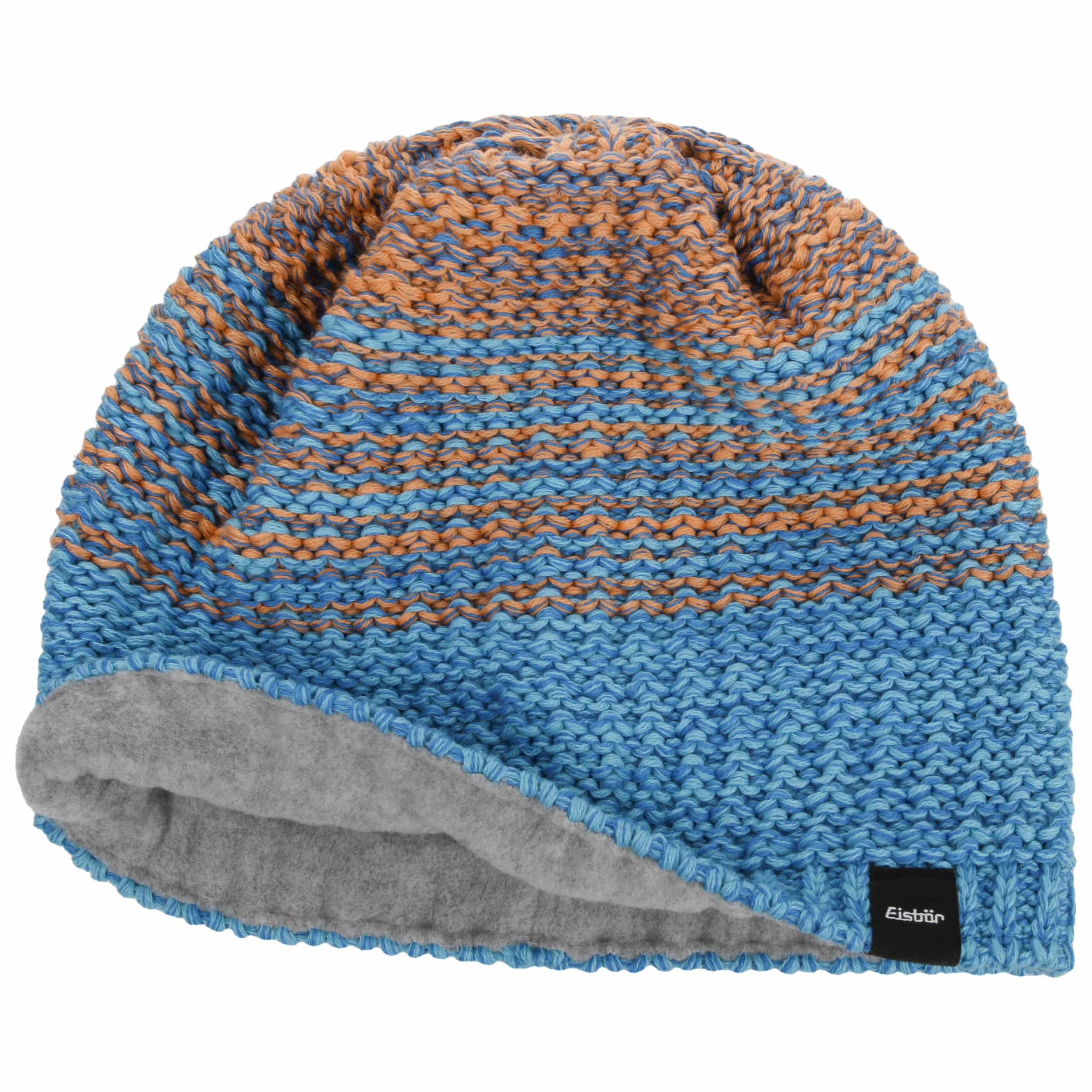The casual knitted hat reinterprets the classic beanie with striking horizontal stripes and multi-coloured yarn. Typical of the Eisbär brand, this model combines a sporty look with urban nonchalance. The finest merino wool and soft fleece lining ensure outstanding comfort and cosy warmth, while the combination of materials remains breathable. The wide cuff and cosy inner lining make this winter hat the perfect companion in frosty temperatures. Manufactured in the EU.