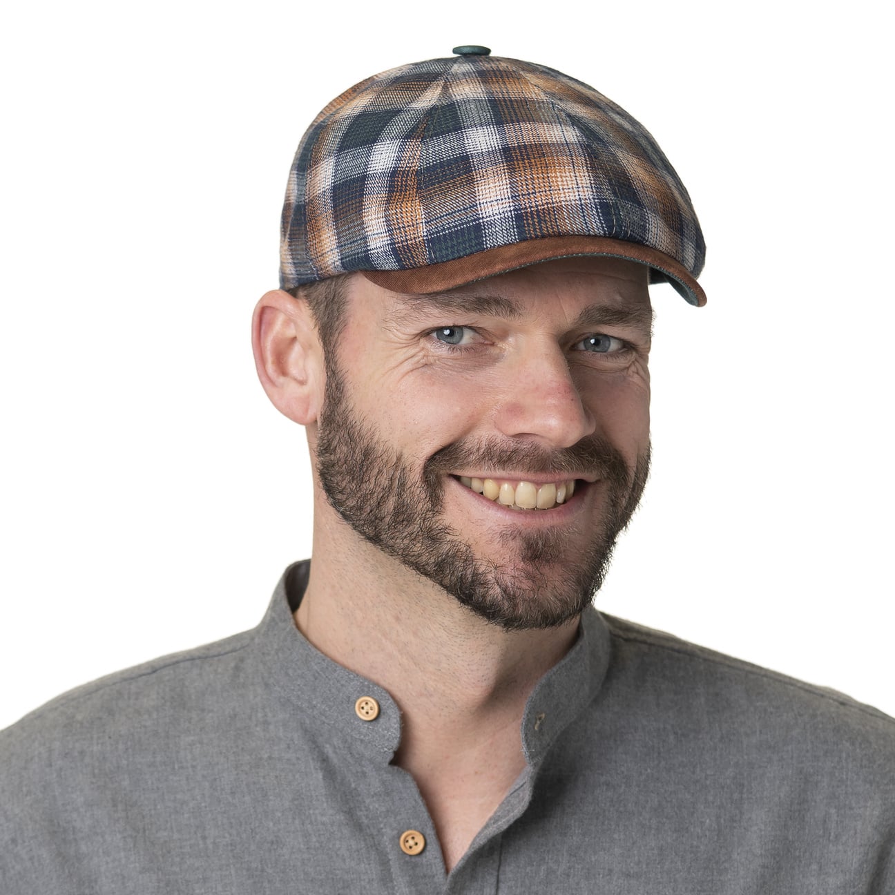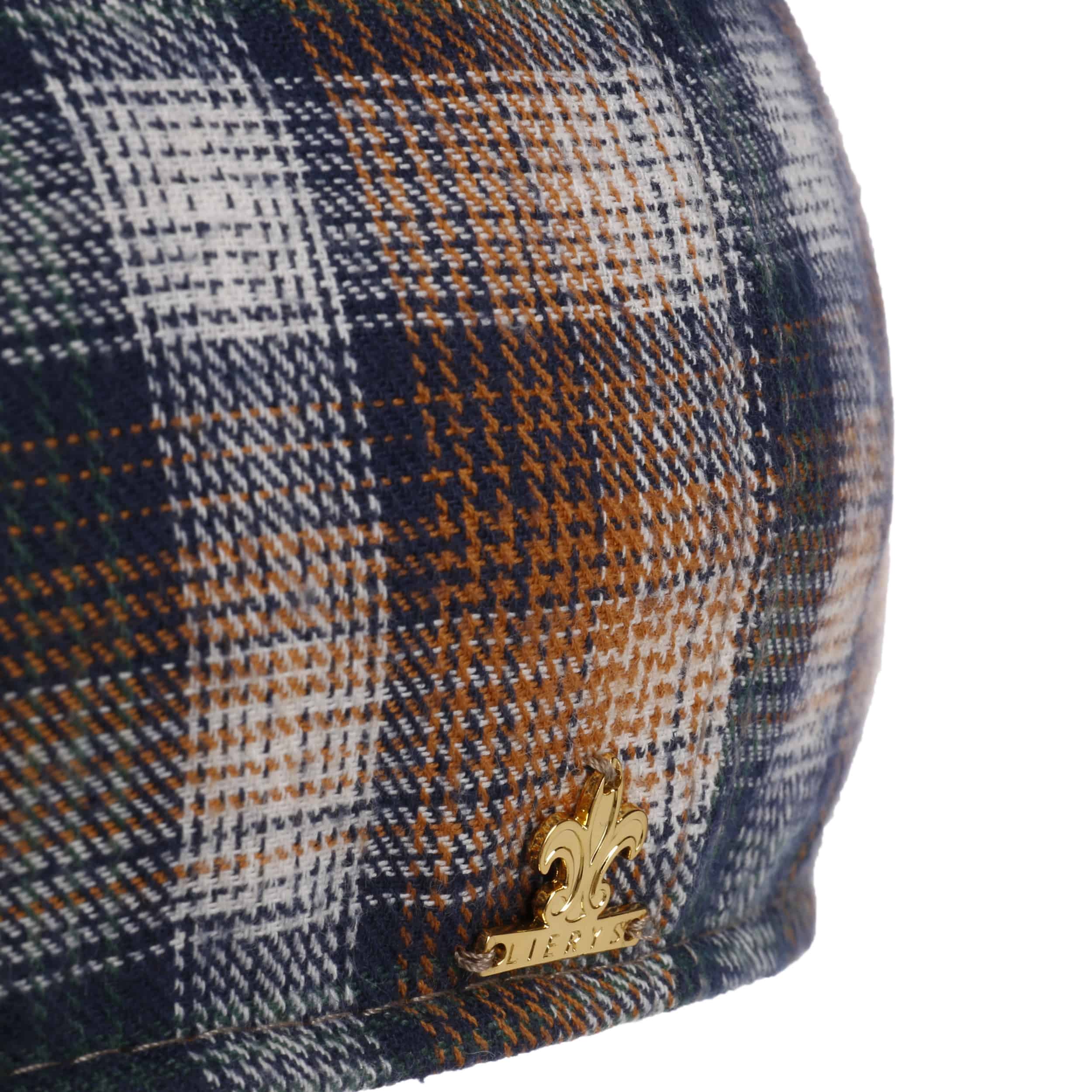The label with the iris logo has dedicated itself to making modern, stylish and comfortable headwear along with matching accessories. Baseball caps, Trilby hats and Bogart hats have been made into timeless designs that give an outfit a classy splash of colour and bring a smart cut to your headwear. High quality knitted sets, which are available individually as beanies, peak pull on hats, Laplander hats, headbands, scarves, gloves etc., discreetly accentuate each lady’s or gentleman’s individuality. From woollen hats to flat caps, Lierys accessories can be worn in endless fashionable combinations.- Candiso Check Flat Cap by Lierys Gold - brown-blue 1