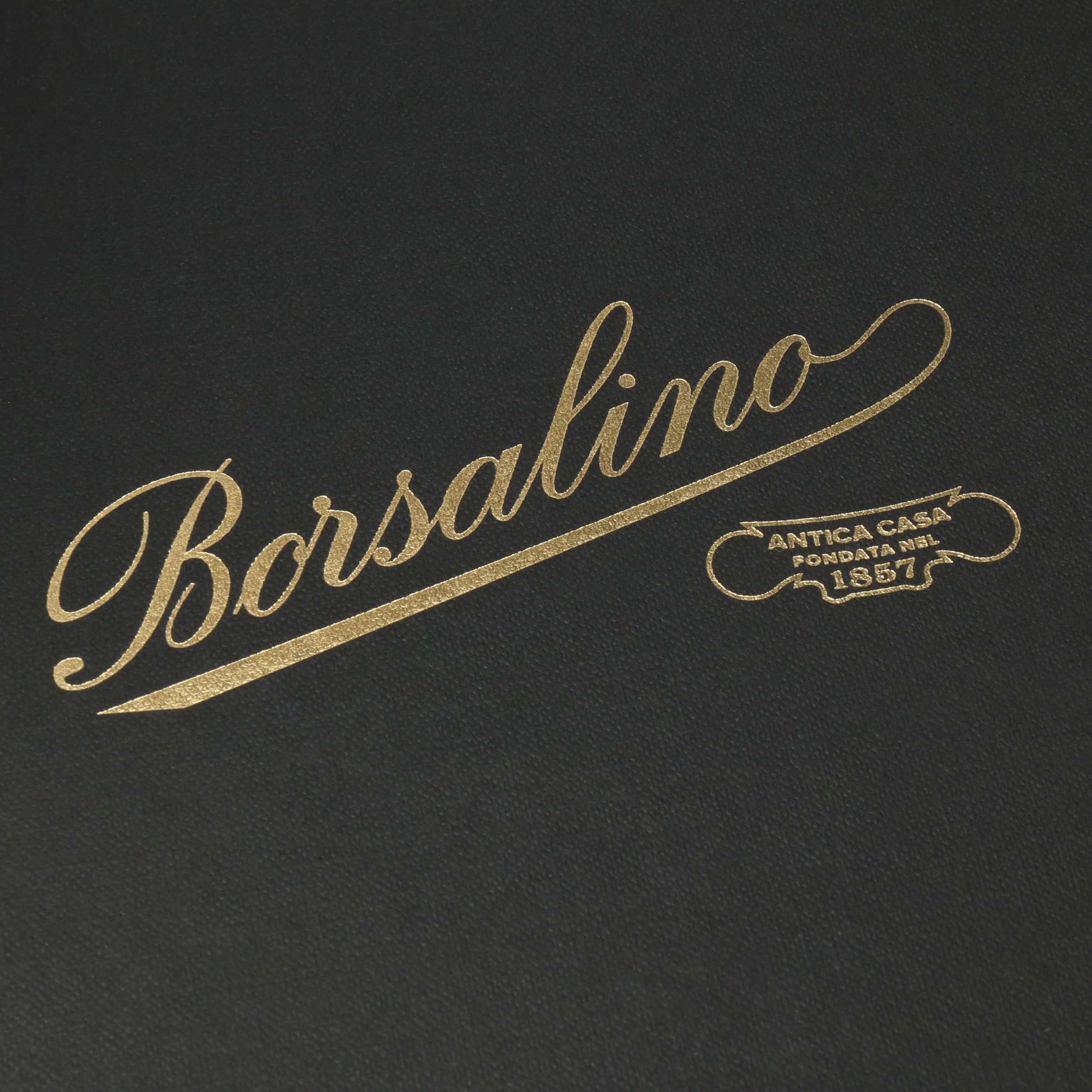 This strong box from Borsalino stylishly showcases caps and flat caps and keeps them safely protected at home or when travelling. An elegant look with gold embossing in combination with high-quality, durable cardboard that offers reliable protection and convenient handling. One of the special details is the finely crafted logo on the lid, which adds a touch of luxury. The box combines classic storage with timeless design.