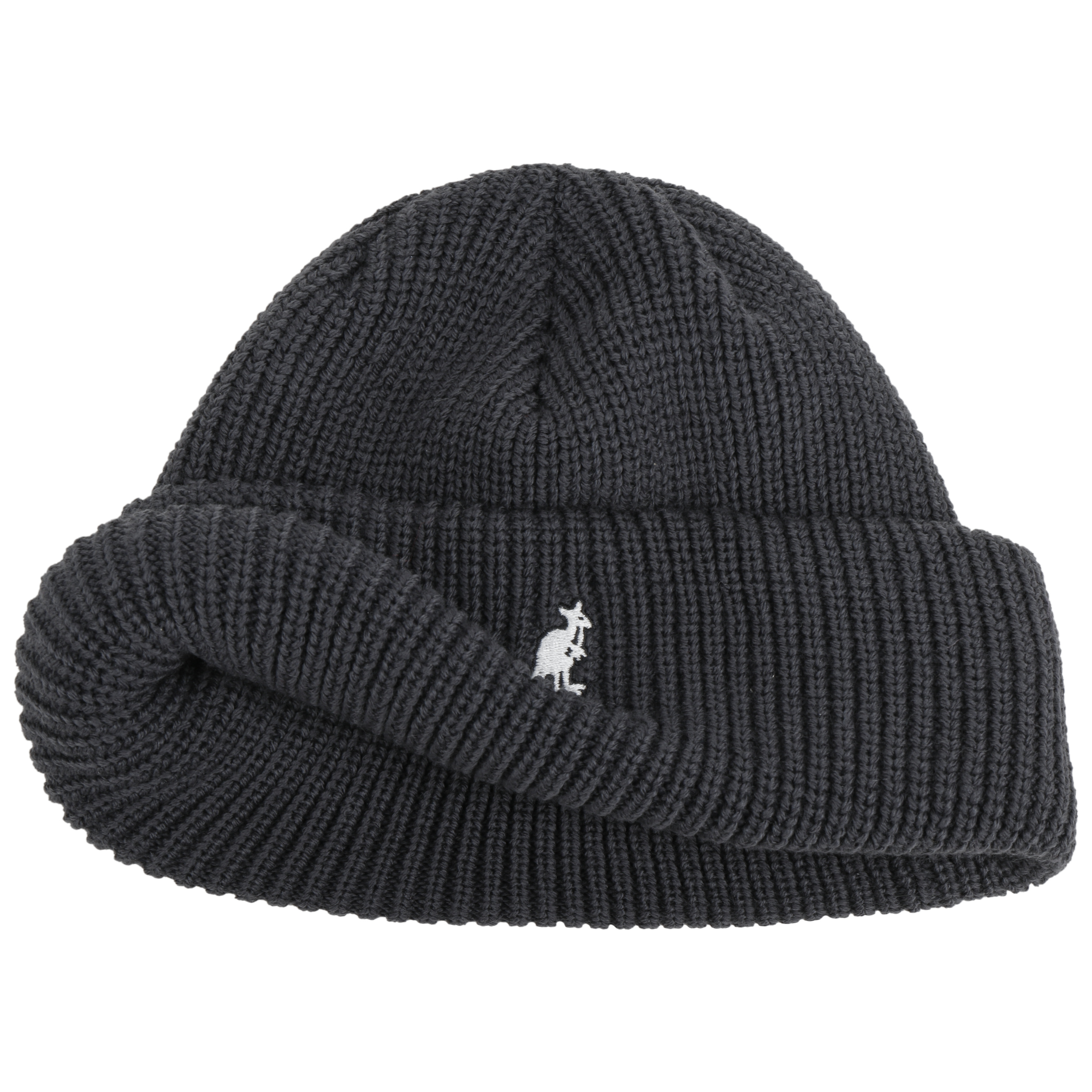 Established in 1938, Kangol gained cult status with its 504 Pepe flat cap, which became the cutting-edge hat of the hip hop scene in the 1980s. Since then, the 504 hat with the popular kangaroo logo has been a generation spanning longseller. It is, meanwhile, available in a diversity of natural and high tech fibres, colours and designs. Besides fashionable flat caps and berets, you will find stylish army and baseball caps as well as soft hats, amazing baker boy caps and cool winter beanies in the wide range of fashion accessories crafted by the British company.- Cardinal 2 Way Beanie Hat by Kangol - dark grey 1