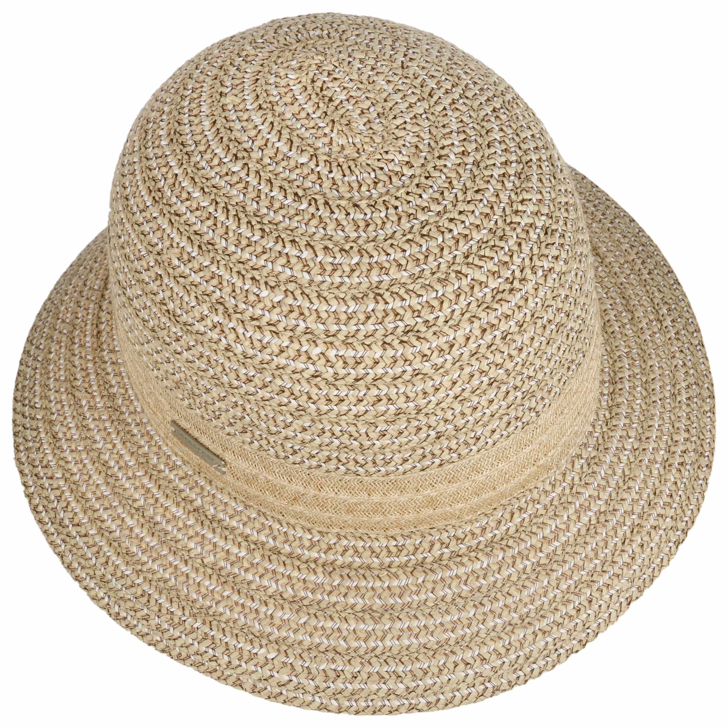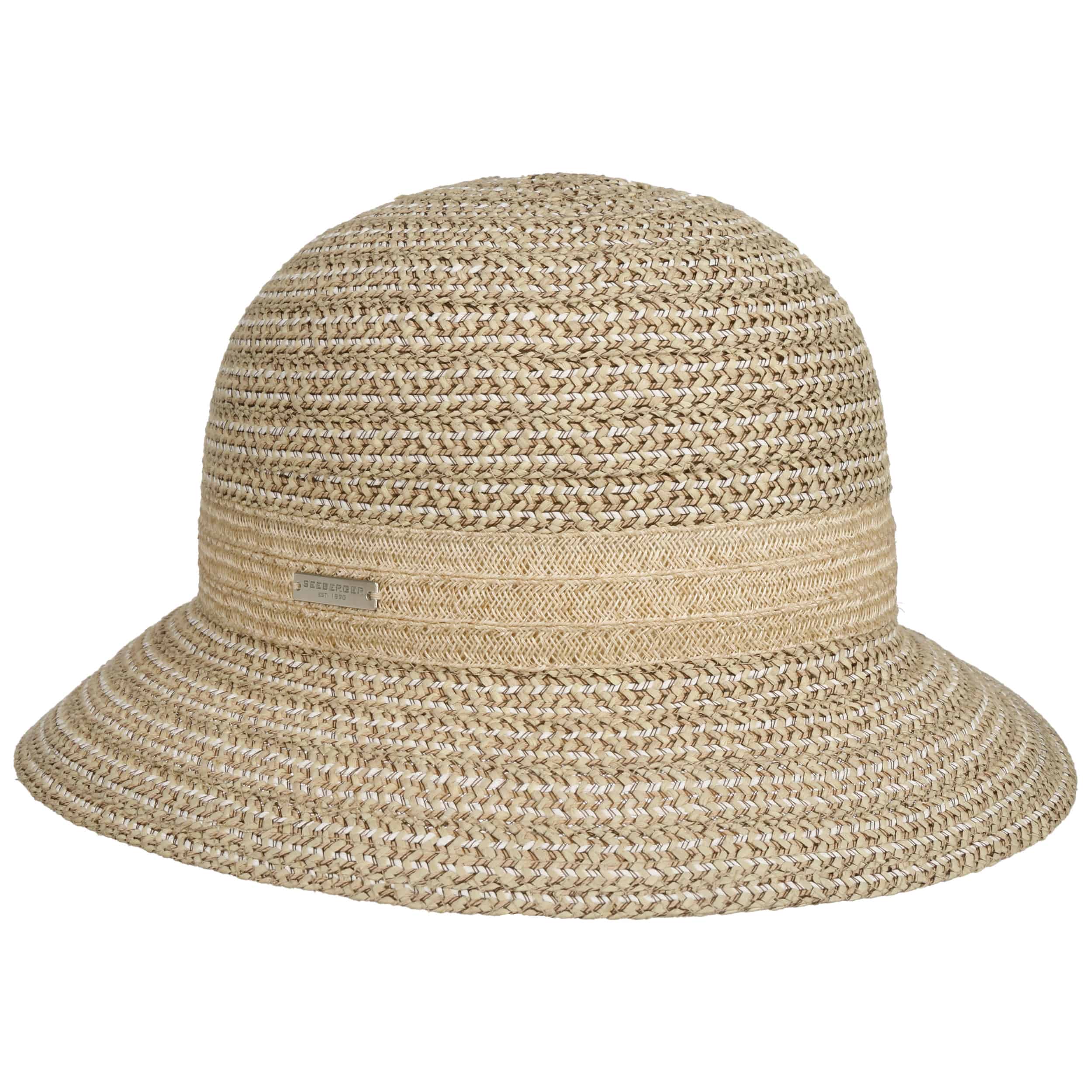 The high-quality cloche from Seeberger has a beautiful, modern look that stylishly enhances a variety of summer outfits. Different shades of colour create a tasteful all-over pattern that accentuates the fine workmanship of the wickerwork from which the headgear is made. A visually contrasting strip replaces the trim band.
