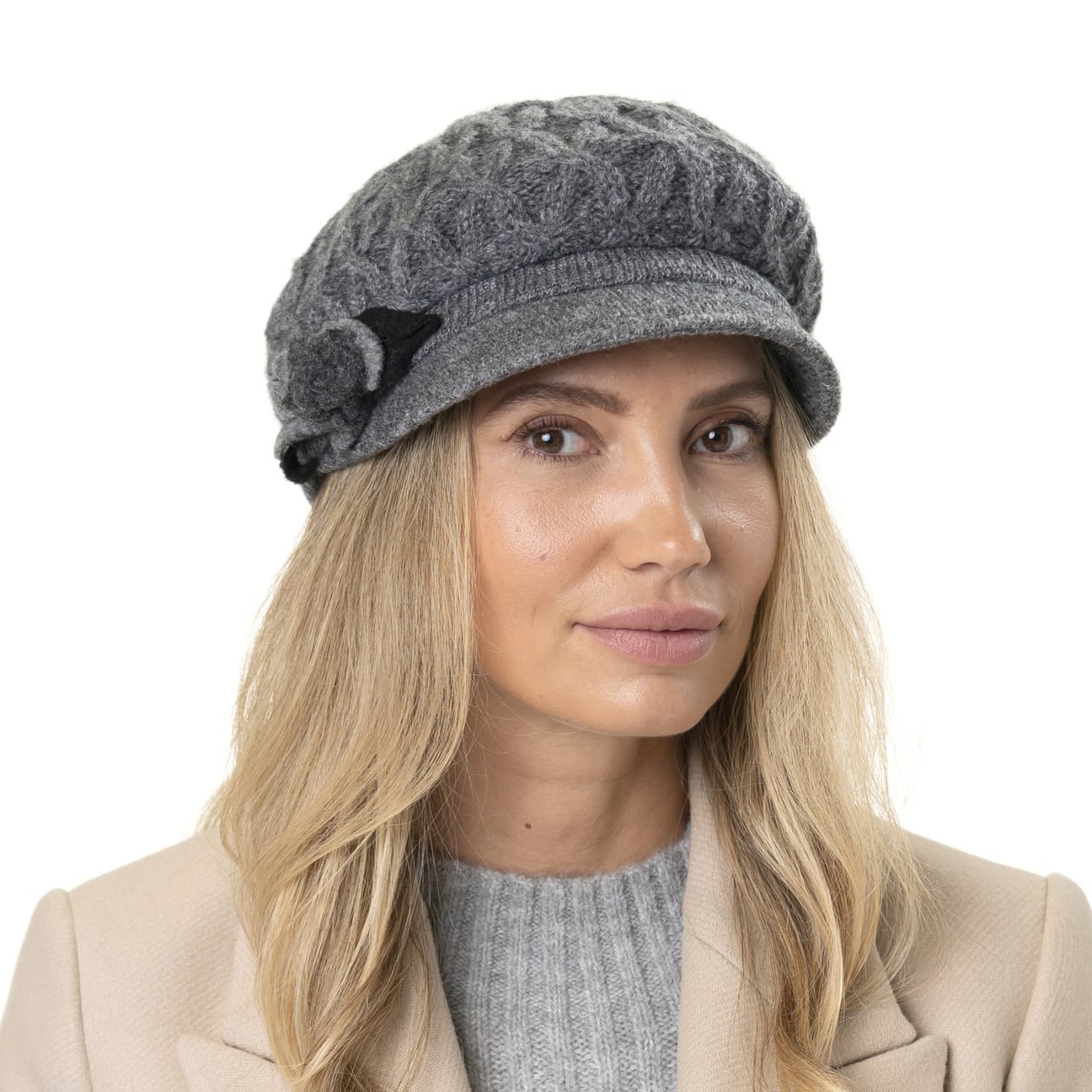 - Carra Mohair Flower Newsboy Cap by Lierys - grey 4