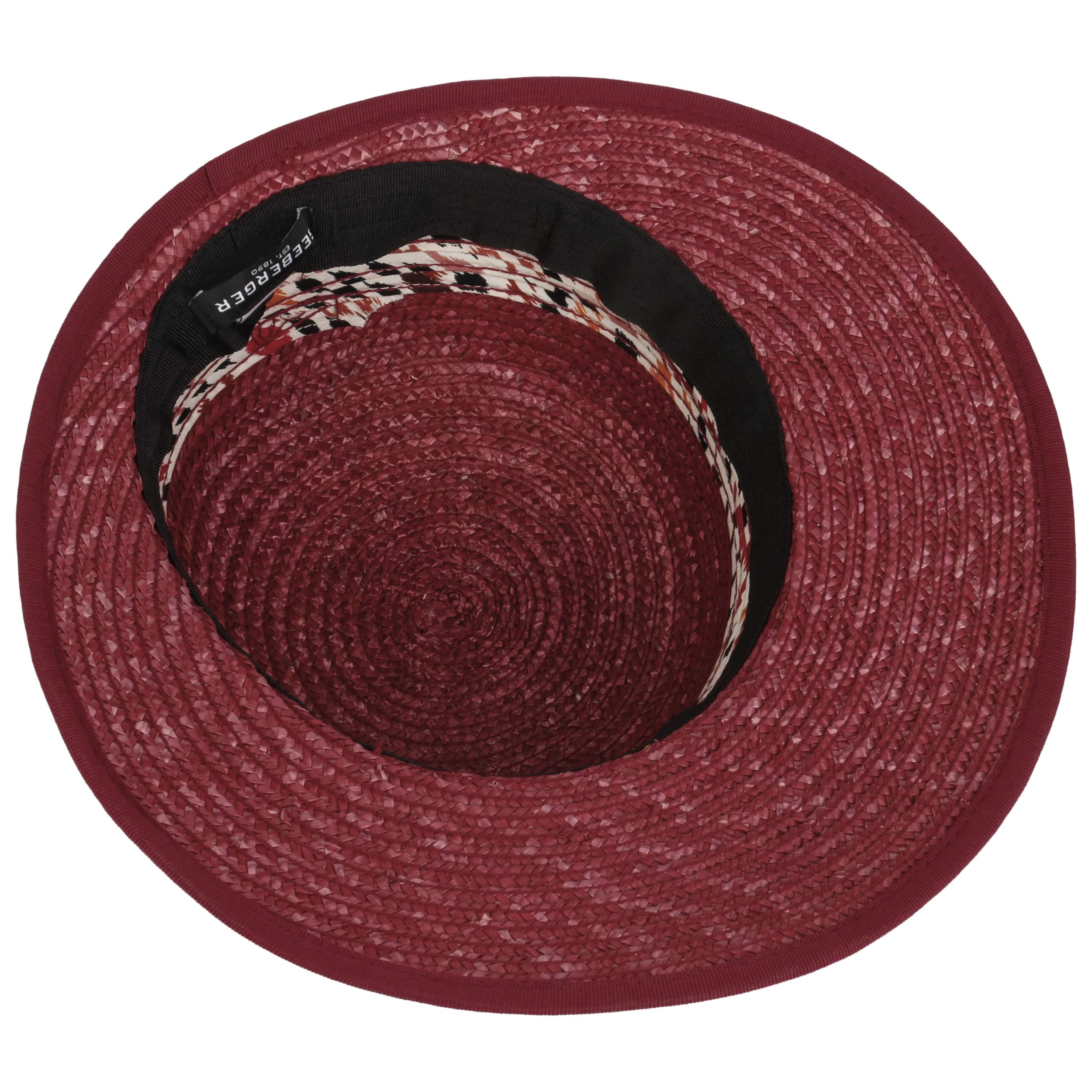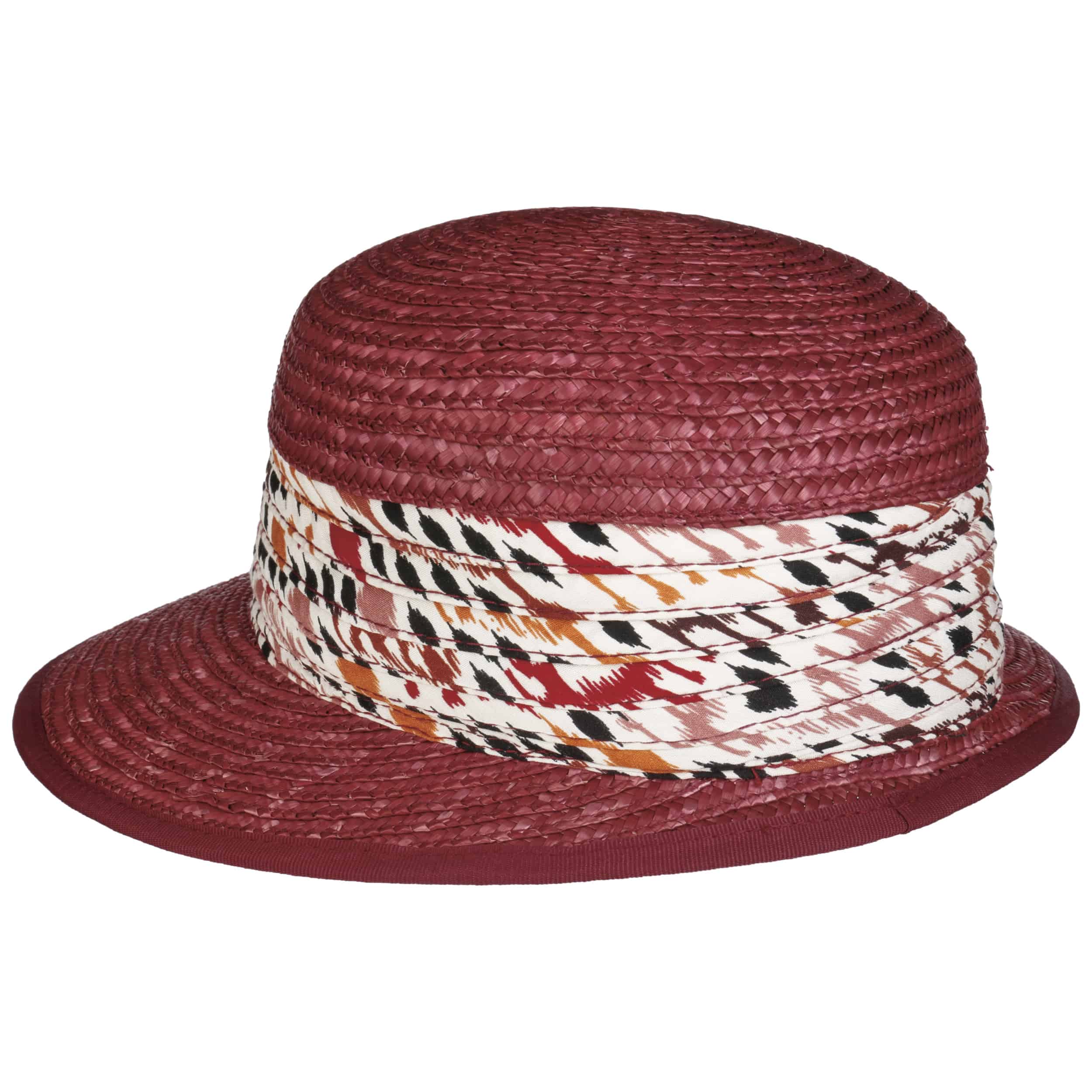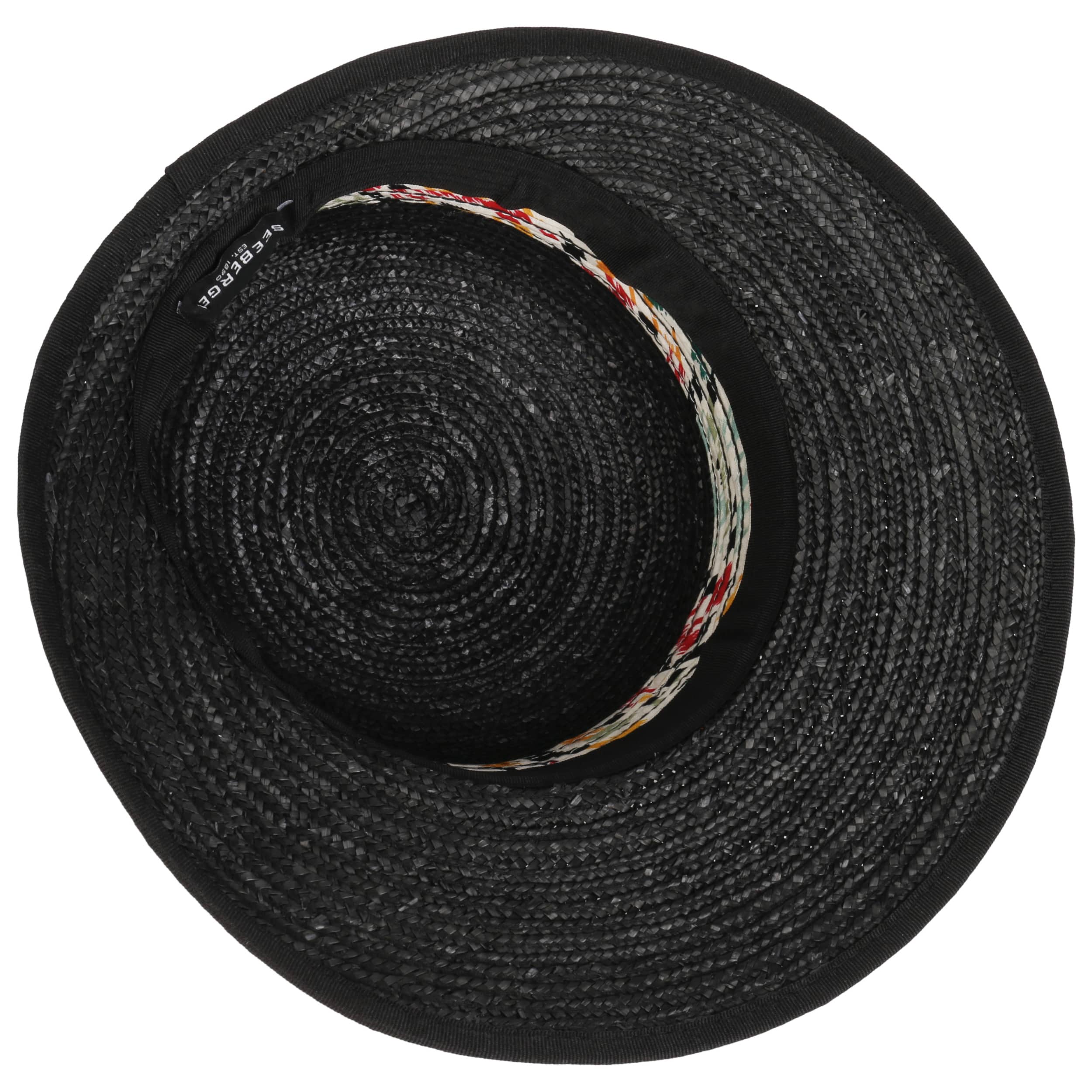 This straw bonnet by Seeberger offers a delightful blend of summer comfort, foldable convenience, and breathable wear. The solid-coloured straw is paired with an extended front brim for added charm, while the intricately patterned fabric trim sets a striking fashion statement.
