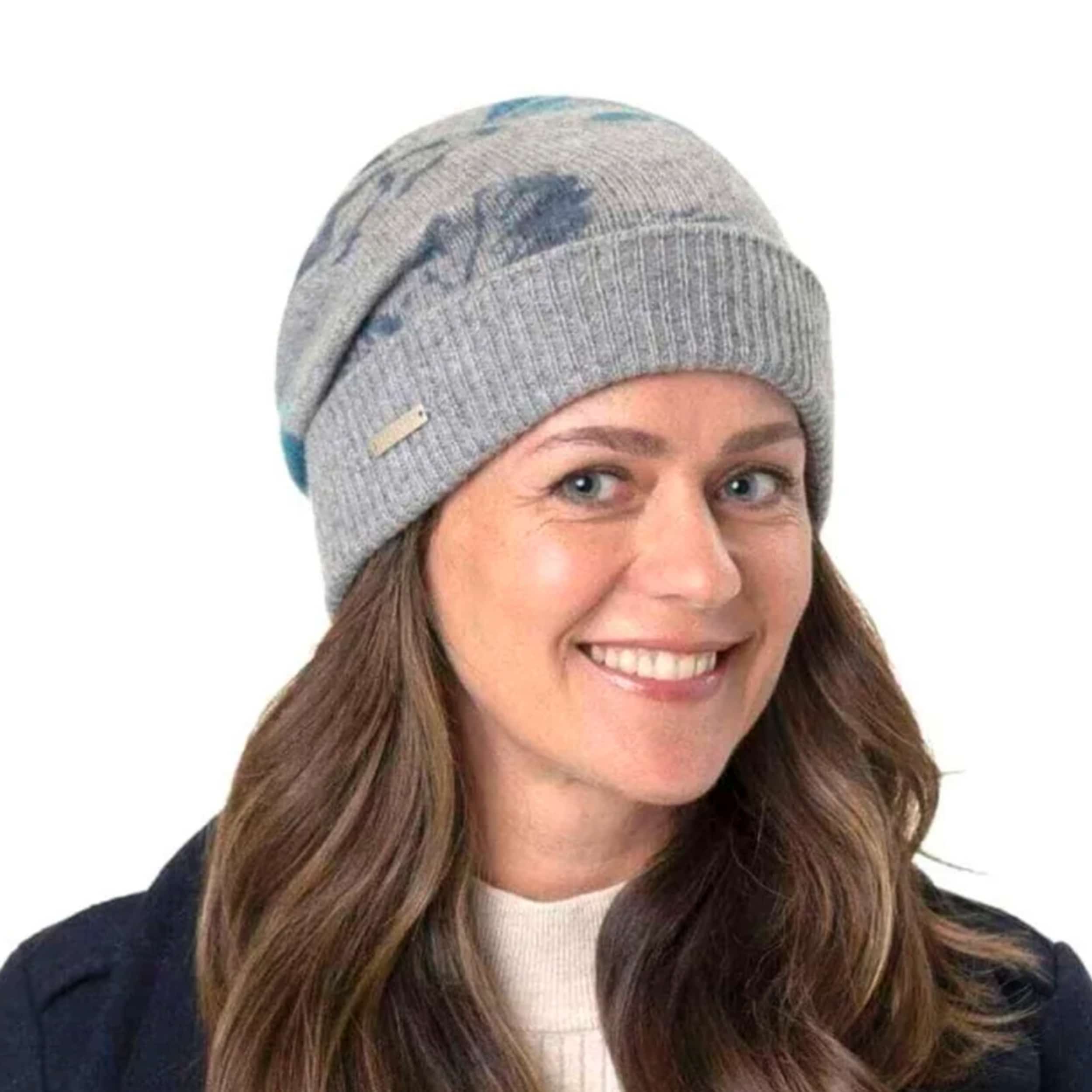 - Cashmere Flower Beanie Hat by Seeberger - grey 3