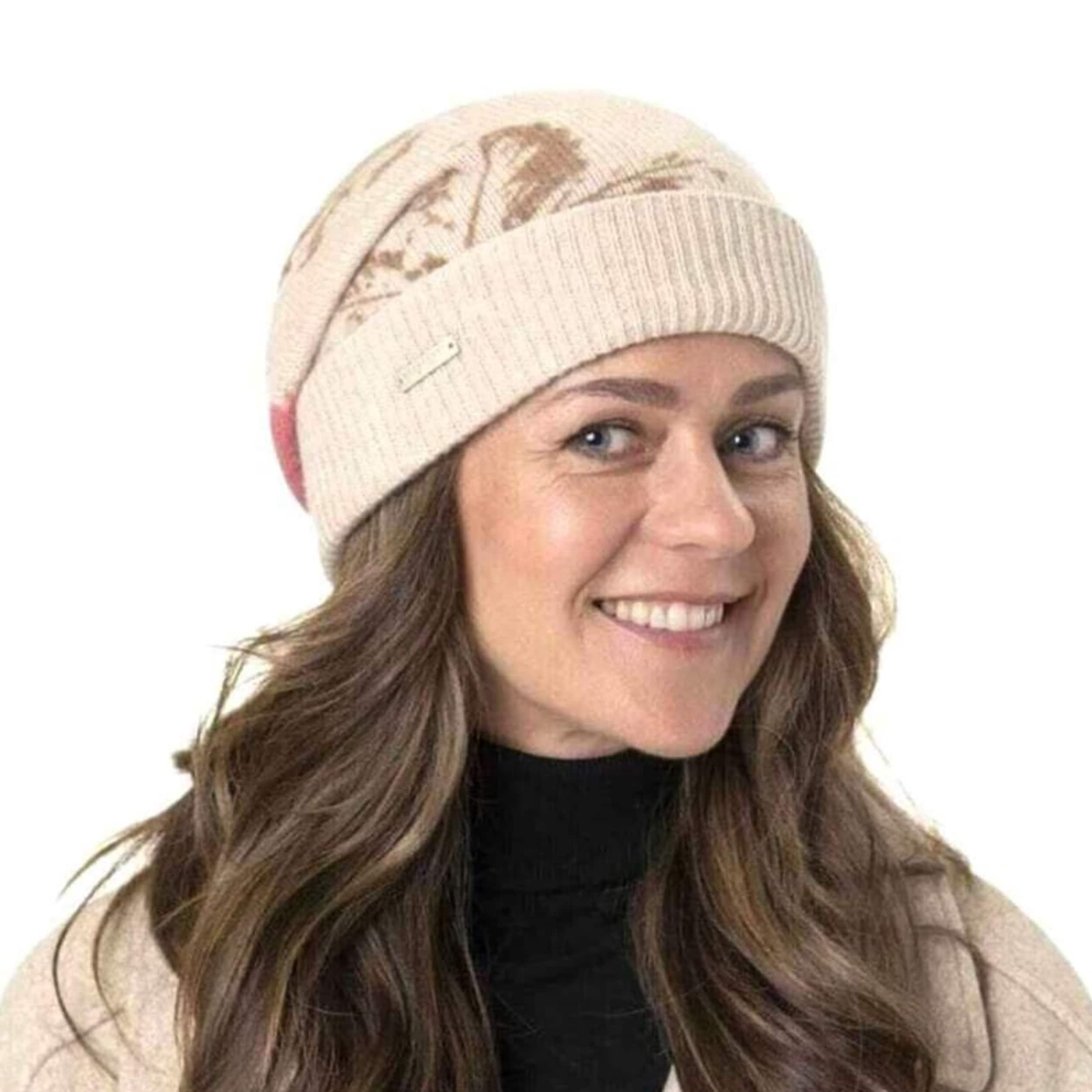 - Cashmere Flower Beanie Hat by Seeberger - oatmeal 2
