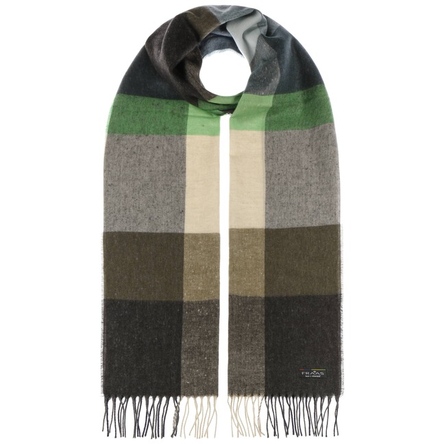 - Cashmink Big Check Fringed Scarf by Fraas - green 1