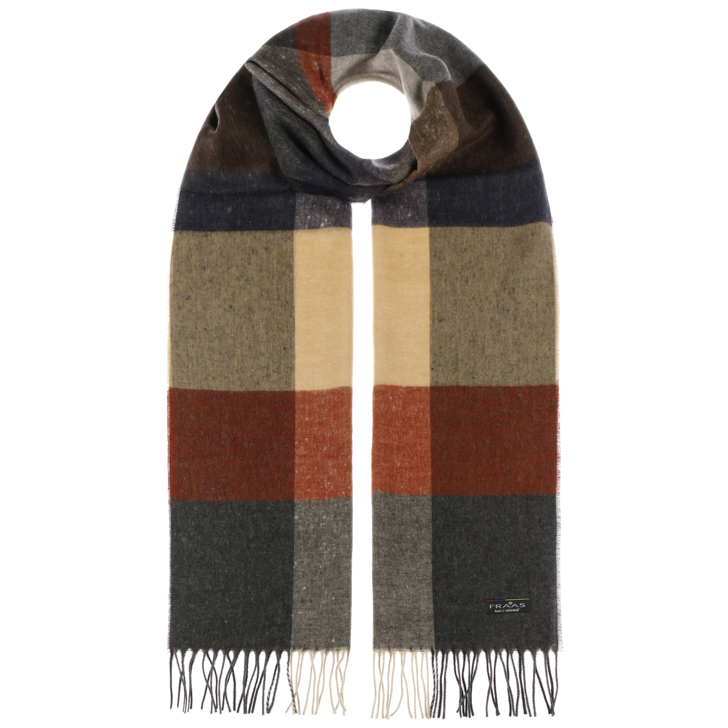 - Cashmink Big Check Fringed Scarf by Fraas - rust 2