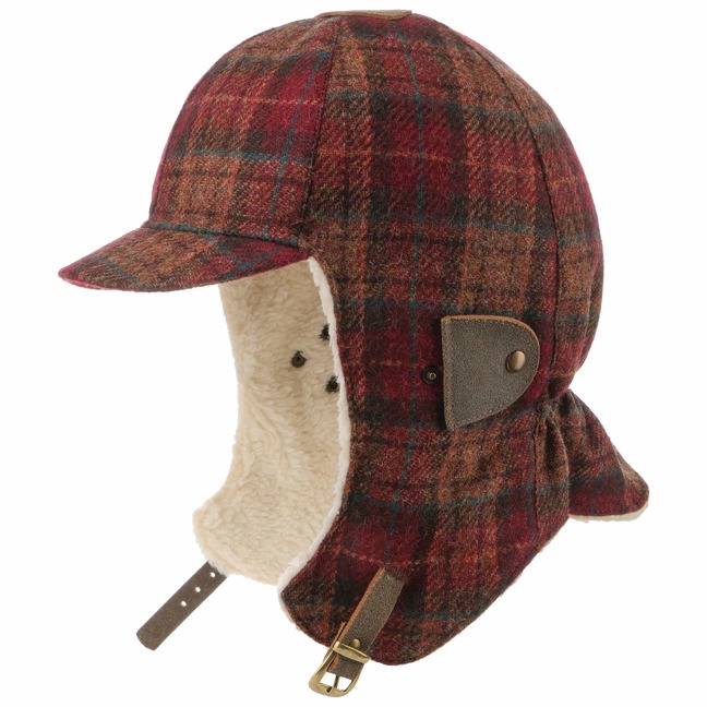 The label with the iris logo has dedicated itself to making modern, stylish and comfortable headwear along with matching accessories. Baseball caps, Trilby hats and Bogart hats have been made into timeless designs that give an outfit a classy splash of colour and bring a smart cut to your headwear. High quality knitted sets, which are available individually as beanies, peak pull on hats, Laplander hats, headbands, scarves, gloves etc., discreetly accentuate each lady’s or gentleman’s individuality. From woollen hats to flat caps, Lierys accessories can be worn in endless fashionable combinations.- Checky Wool Felt Aviator Hat by Lierys - brown 1