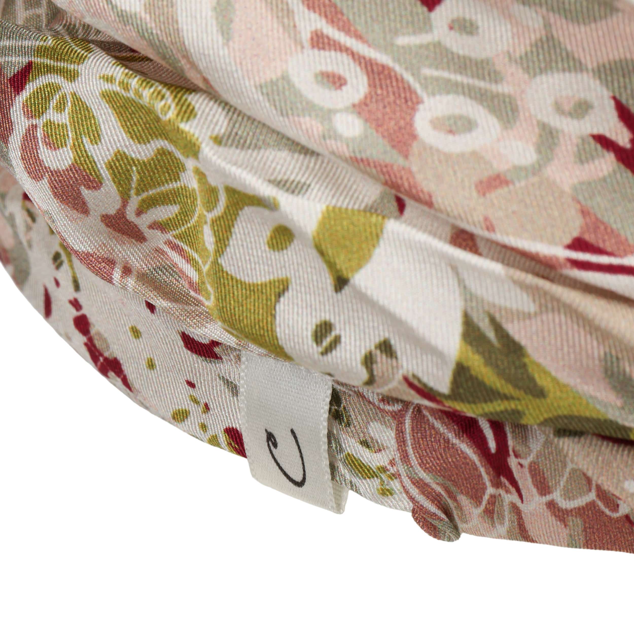 The turban from Christine Headwear has an elegant shape that offers a feminine alternative to the classic hat. The outer material is made from pure silk, while the lining is made from a silk blend with cotton content, ensuring a pleasantly soft feel against the skin. An integrated stretch band allows flexible adjustment to different head circumferences and increases comfort at the same time.