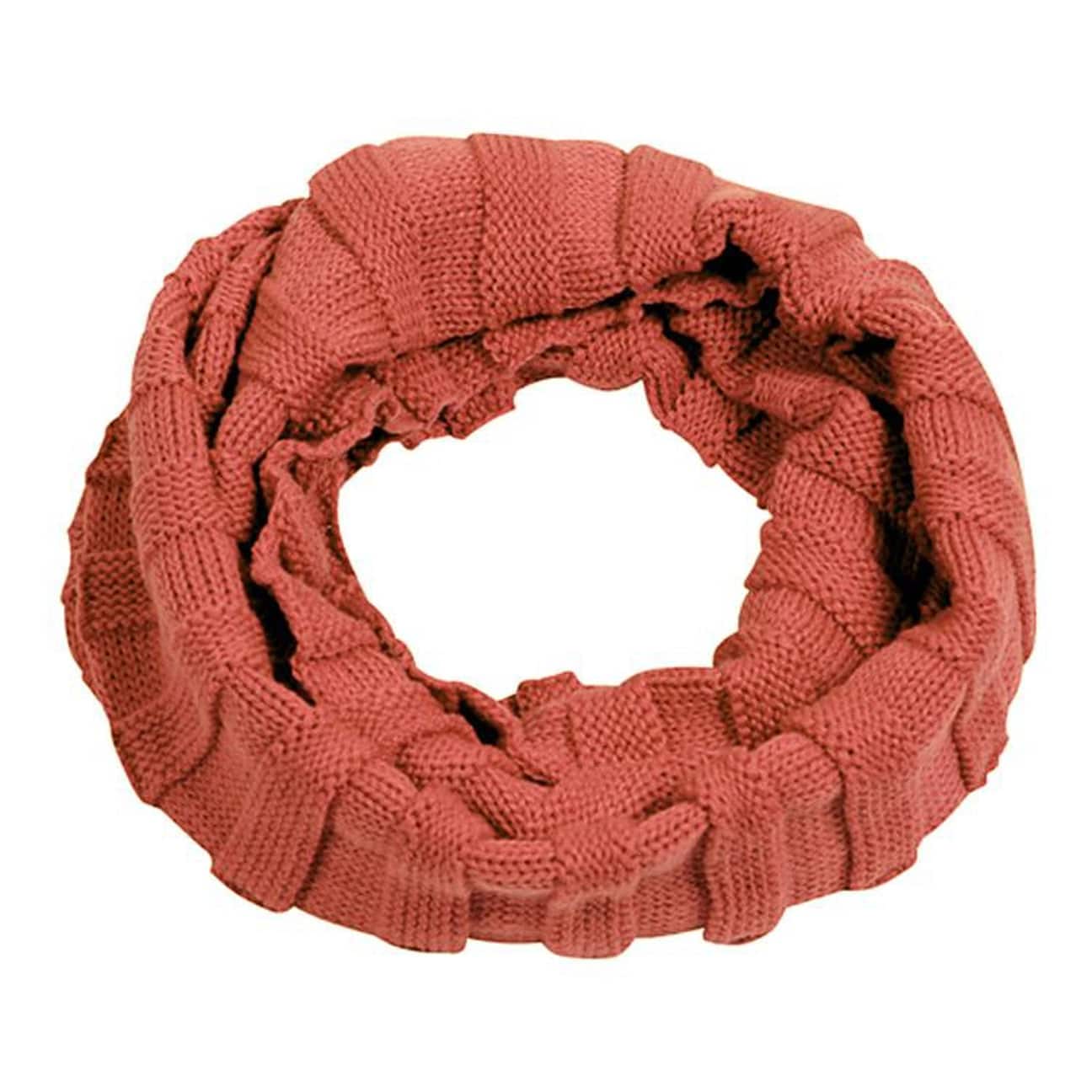 Our own brand provides a fresh selection of trendy headwear and fashion accessories: army and baseball caps, flat caps, baker boy hats, trilbies, fedoras, Western and cowboy hats, bucket hats, berets, beanies, scarves and gloves as well as care products. We offer you both classic and fancy designs in high quality at a more than reasonable price. Our exquisite selection is for people of sophisticated taste at the pulse of the time.- Clara Loop Infinity Knit Scarf - rust 1