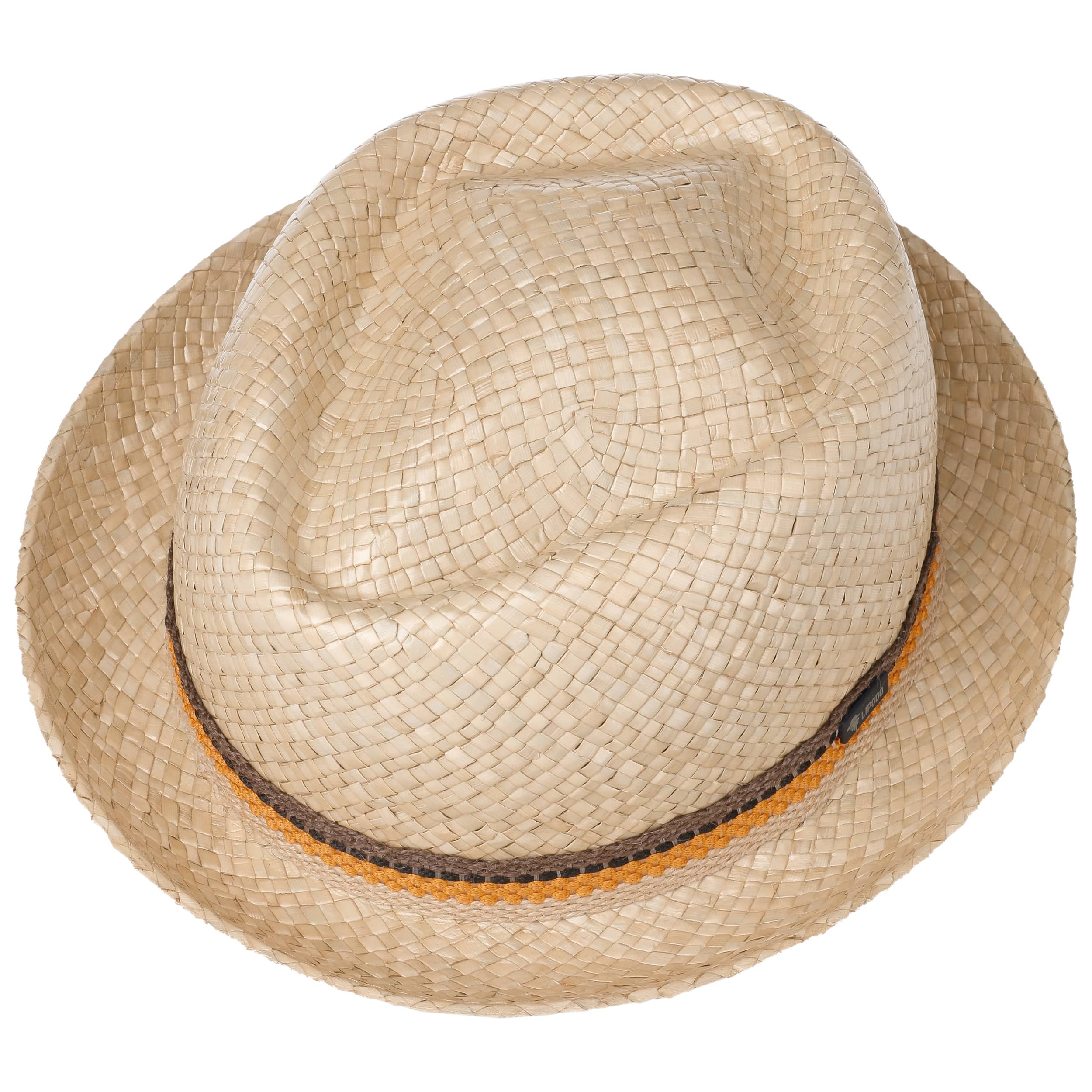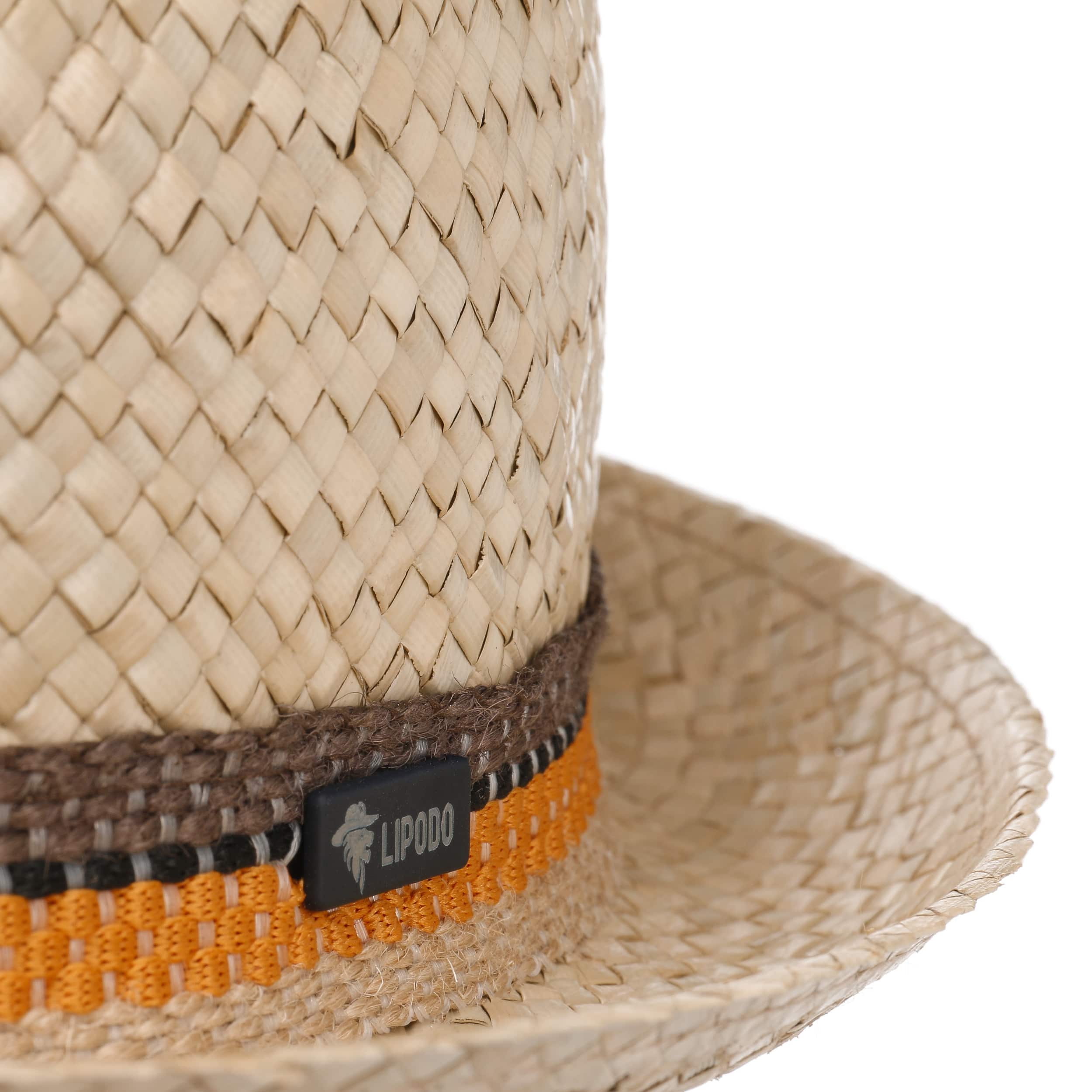 This high quality straw hat from Lipodo combines the stylish charm of the pork-pie shape with fabulously fashionable highlights. The natural and elegant look of its elaborate weave makes an exciting contrast to the decorative band made from coloured cord that is placed around the head of this diamond hat.
