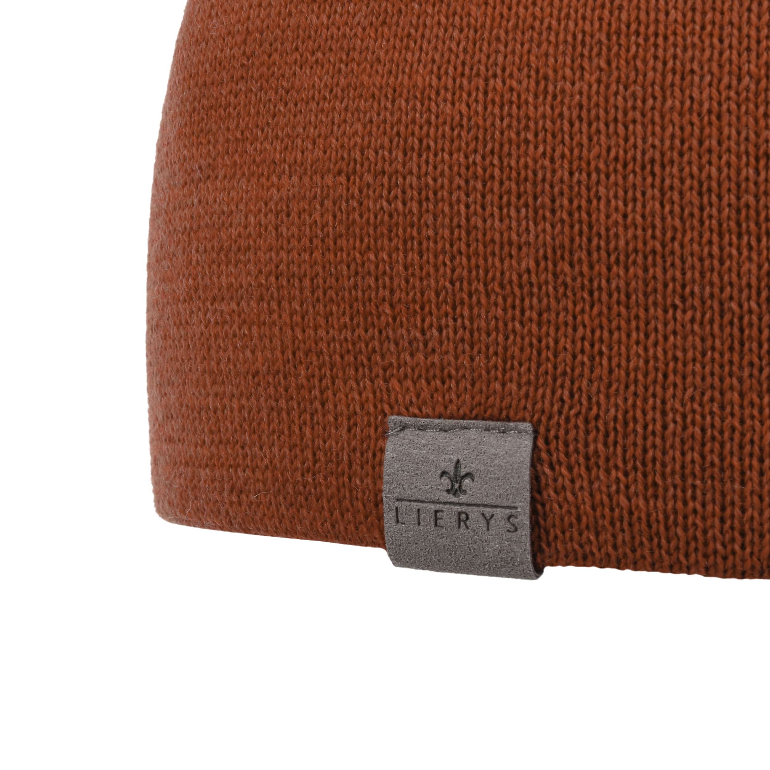 The label with the iris logo has dedicated itself to making modern, stylish and comfortable headwear along with matching accessories. Baseball caps, Trilby hats and Bogart hats have been made into timeless designs that give an outfit a classy splash of colour and bring a smart cut to your headwear. High quality knitted sets, which are available individually as beanies, peak pull on hats, Laplander hats, headbands, scarves, gloves etc., discreetly accentuate each lady’s or gentleman’s individuality. From woollen hats to flat caps, Lierys accessories can be worn in endless fashionable combinations.- Classic Fine Merino Long Beanie by Lierys - brown 1