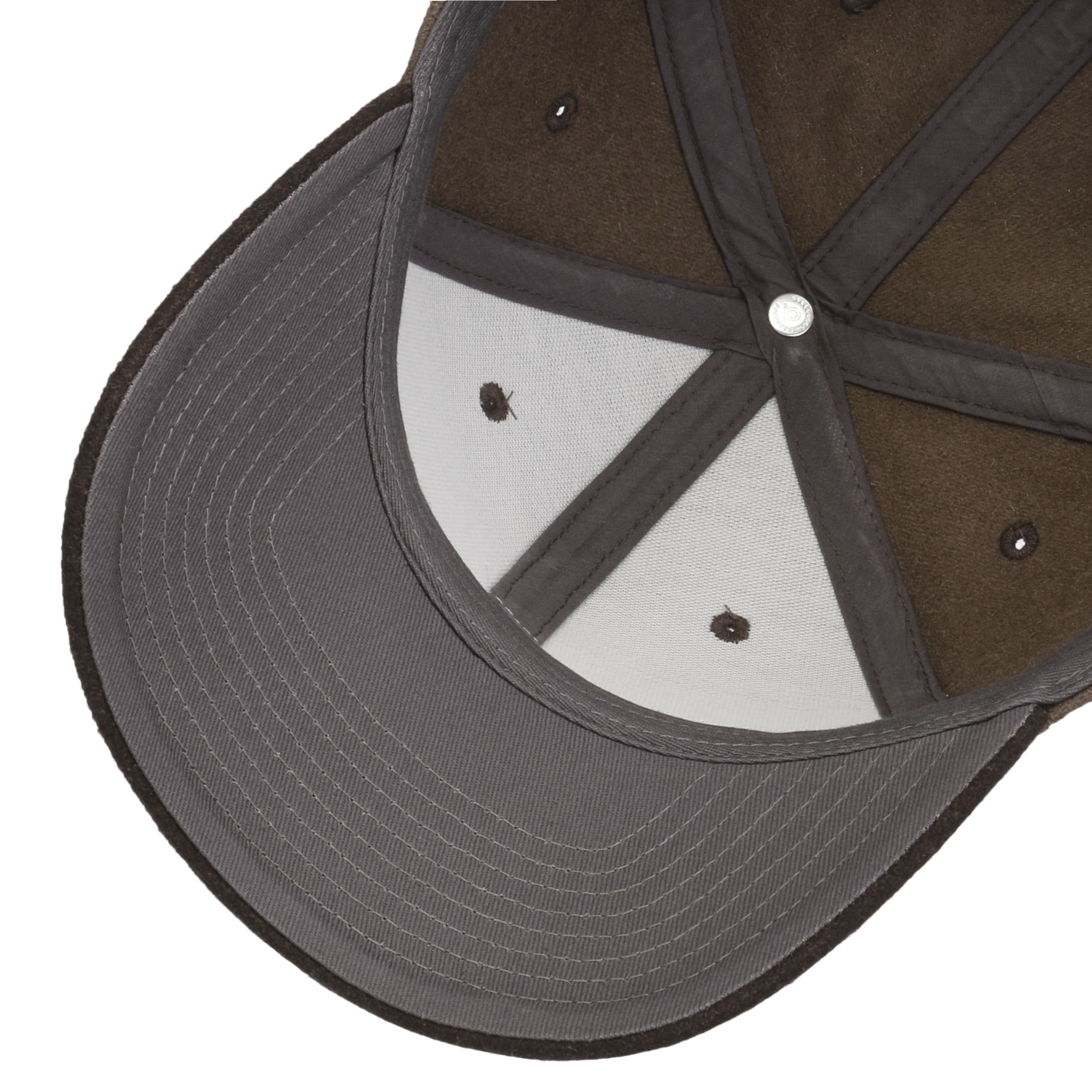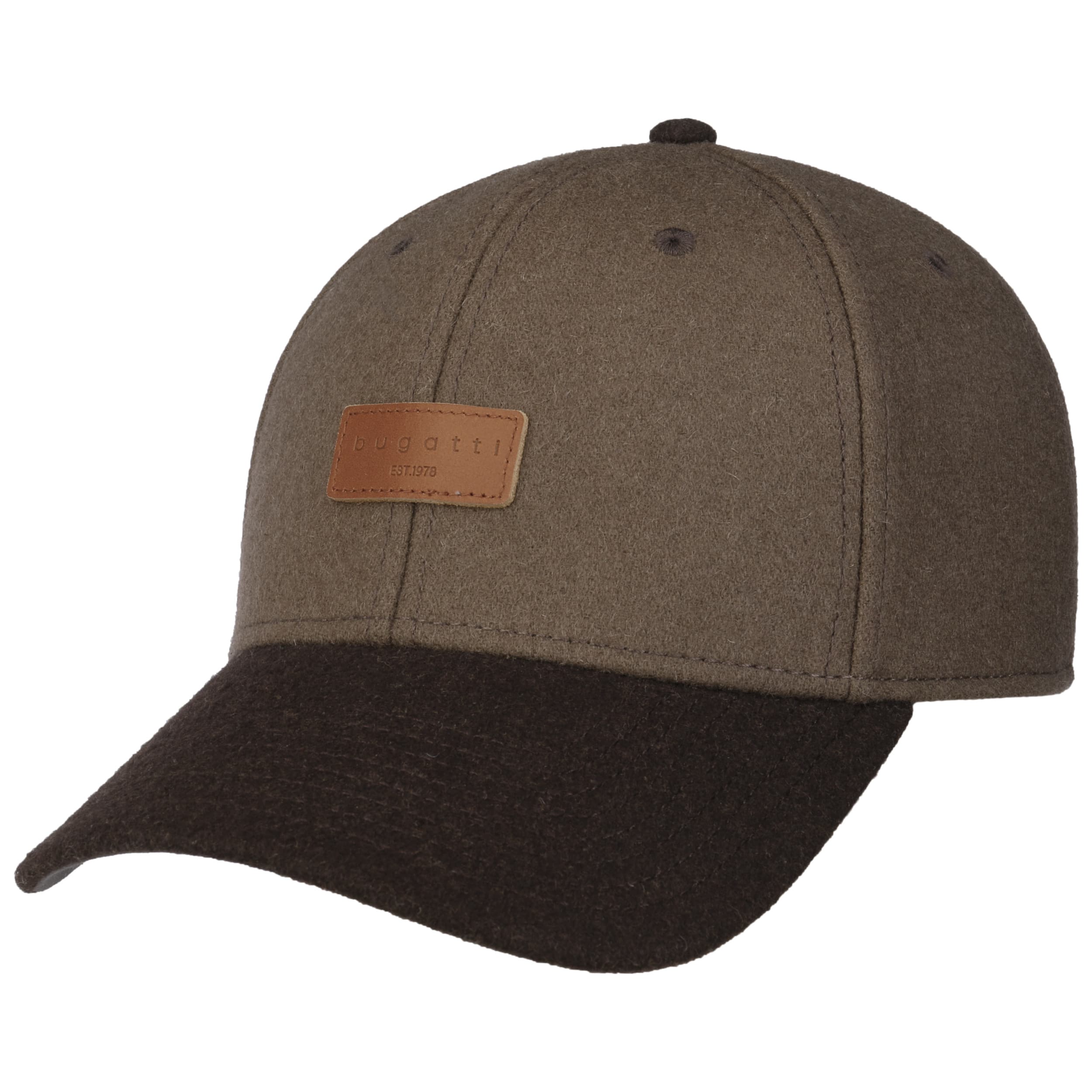 This baseball cap from bugatti keeps you looking sporty and casual through the coldest season of the year. The six-part cap is made from a warming wool blend in a felted finish and reliably protects the head from the winter cold and moisture. The plain-coloured peak contrasts with the heathered crown. Embroidered ventilation eyelets ensure good air circulation.